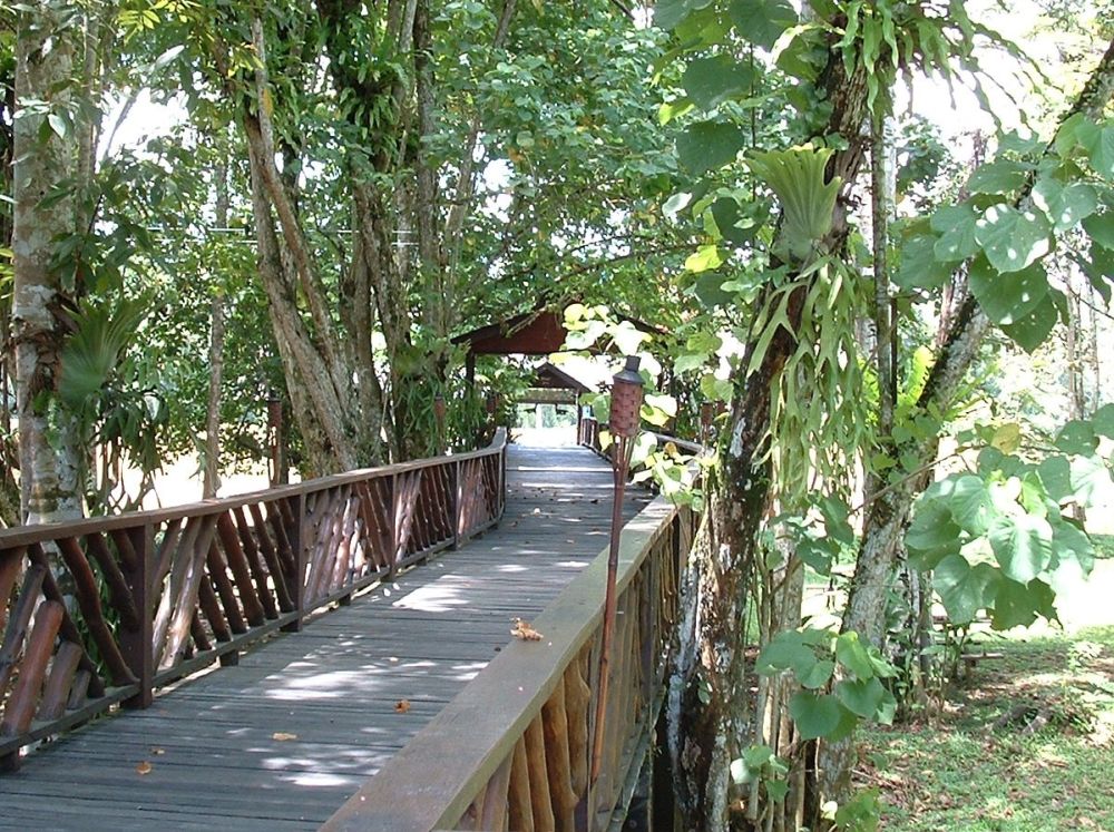 Næste dag gik det efter morgenmaden retur til Sandakan hvorfra en anden båd ventede på at tage os ind midt i Borneos regnskov. Vi sejlede i lidt over 2 timer ad den store flod Kinabatangan til vi ankom til ”byen” Sukau – og til Sukau Rainforrest Lodge. Det var et fantastisk sted Tina havde fundet. Selve hytterne var ikke vildt luksus som sådan, men stedet var bare så charmerende og havde en perfekt afslappet atmosfære. En time efter vores ankomst lod det til at hele personalet kendte vores navne. Når man bor på Sukau Rainforrest Lodge er det ”all inclusive” da der ikke er nogle steder at gå hen og spise.. Så hver gang der var måltider blev der ringet på en stor gong gong – og så kunne man gå til bords iført sig den sarong man havde fået udleveret. Ellers var det naturligvis safari turene op langs floden der var dagenes højdepunkter. Vi så masser af fugle; de flotteste is- og næsehornsfugle. Vi så krokodiller, kæmpe varaner, slanger og kom lidt for tæt på de vilde elefanter der stod ved floden og drak.