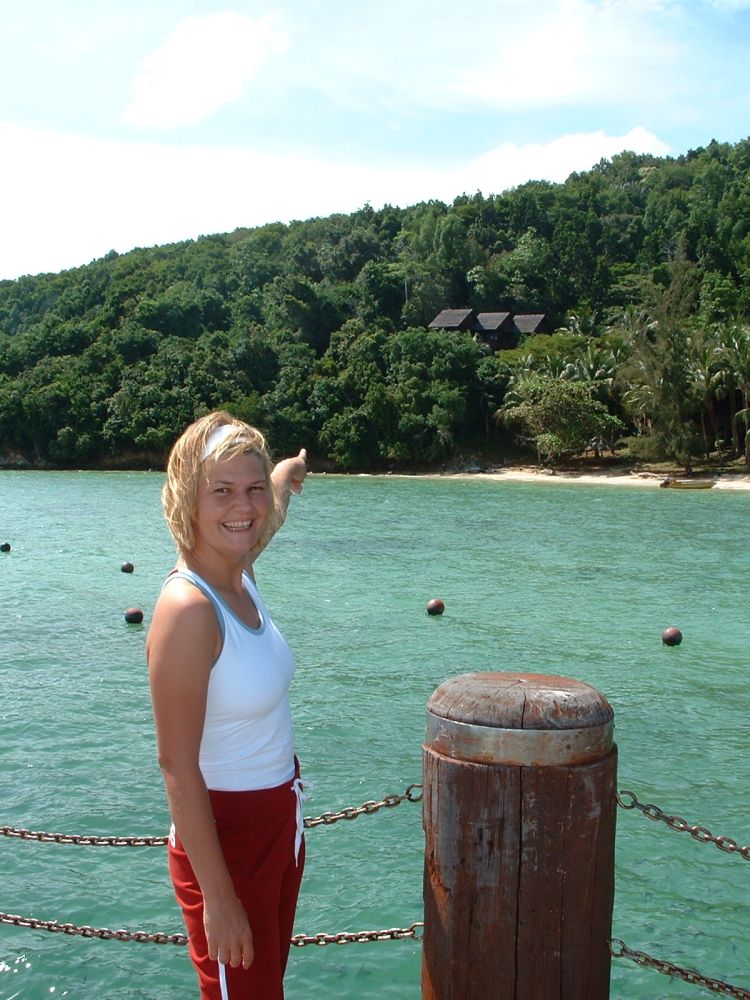 Næste morgen tog vi bussen tilbage til Kota Kinabalu hvor vi lige akkurat nåde at bestille en flybillet videre til Brunei, samt at booke et ophold på den nærliggende Manukan Island, inden den sidste båd afgik. Vi fik først en hytte midt på øen, tæt ved restauranten og stranden, men var ikke helt tilfreds med den – så dagen efter fik vi byttet hytten ud med en anden der lå oppe ved klipperne, noget længere væk, men tilgengæld med en lille balkon med en fantastisk udsigt – skønt.