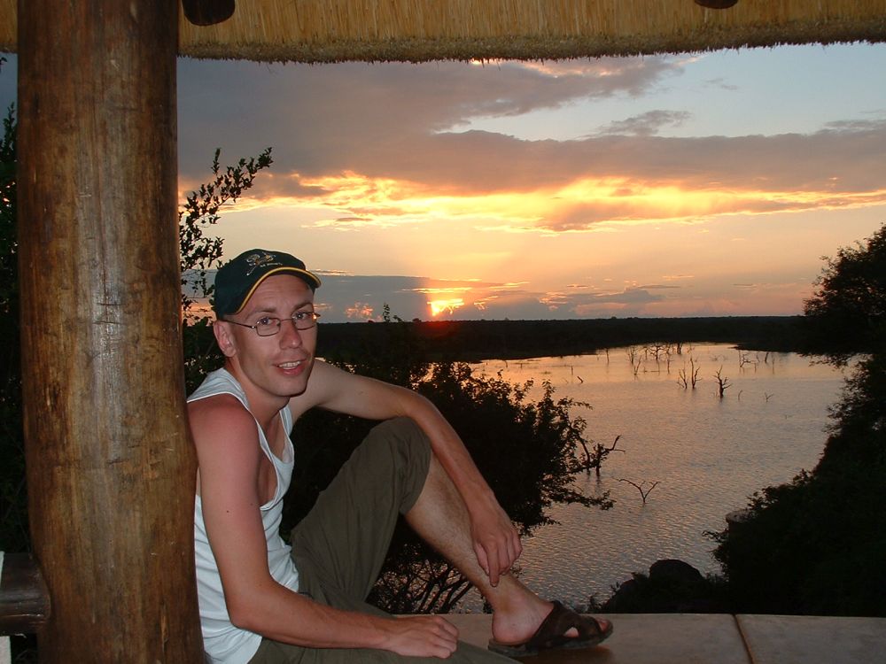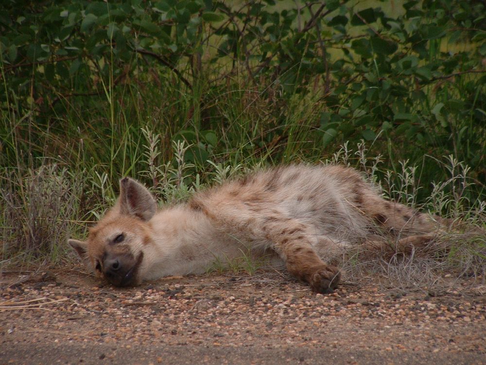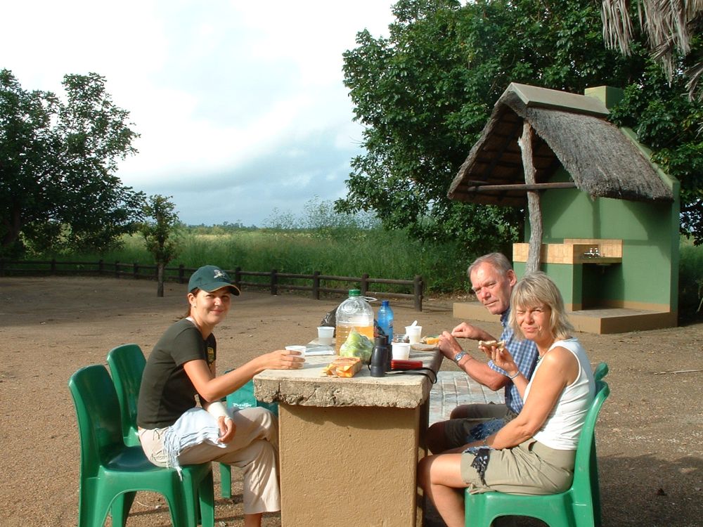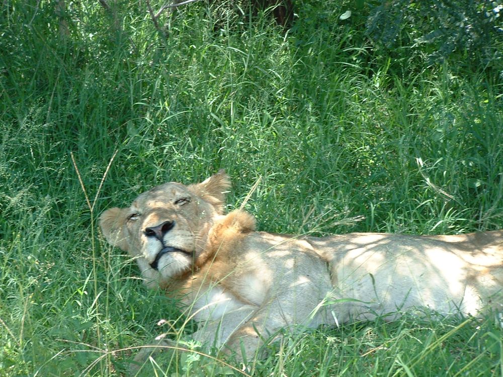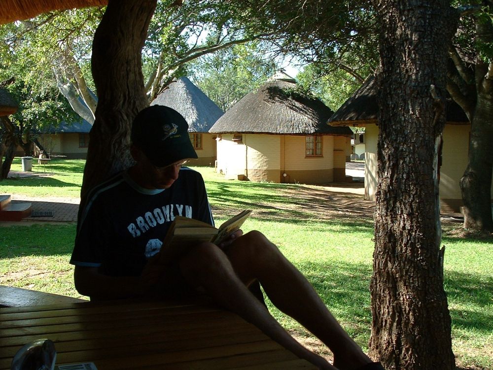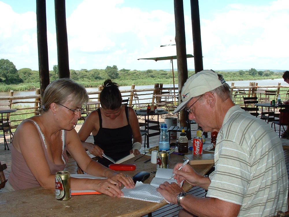 Morgenmad på en ‘resteplads’ i parken – det er ikke altid man når morgenmad når man skal være på farten kl. 6:00 for at spotte dyrene inden det bliver for varmtEn næsehornsfugl – ses også på mange campingpladser på jagt efter madrester.Impalaer er nok det dyr man ser flest af på en dag i Krüger – men de er nu flotte.Øhh hvis vi nu bare holder helt stille, er du så ikke sød at gå udenom?Nyder endnu en fantastisk solnedgang – til lyden af flodhestenes prusten! Her vælges bakke-løsningen i stedet.. Men meget godt billede af størrelseforholdet.Gribbene holder frokost på resterne af det der engang var en giraf!Solnedgang sammen med de lokale bavianer..