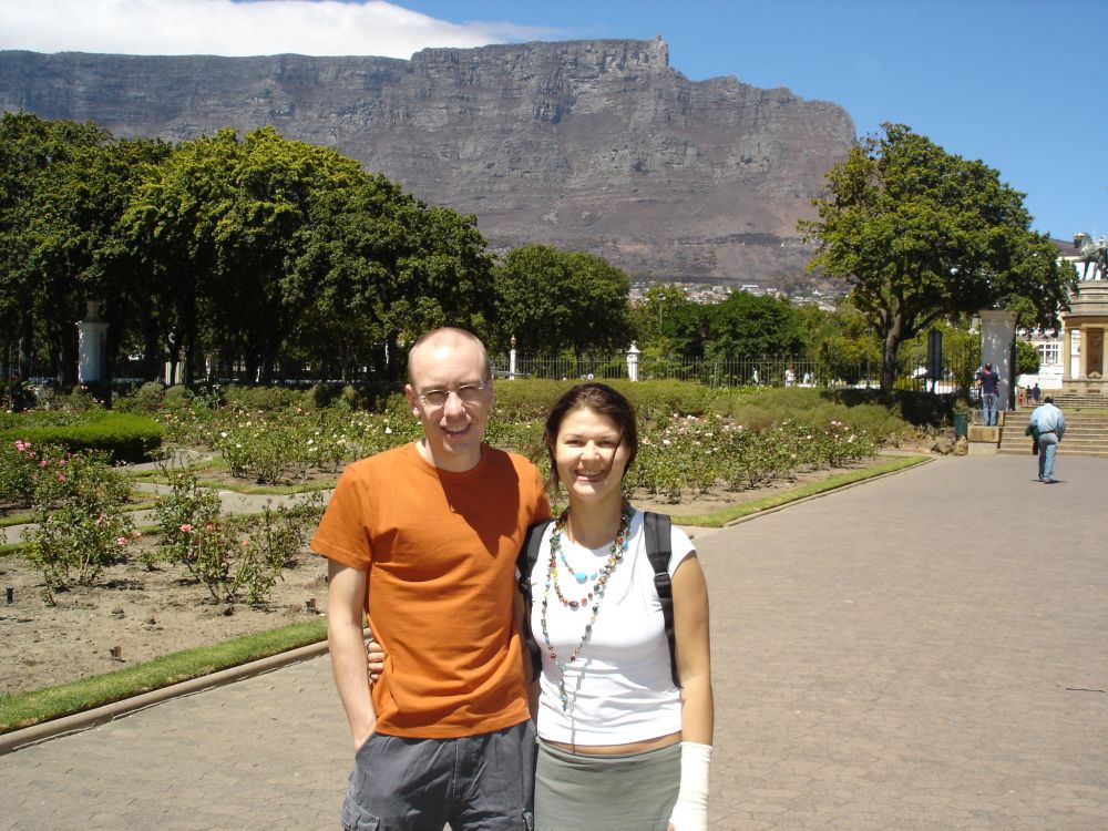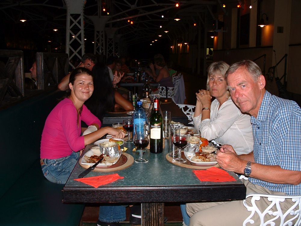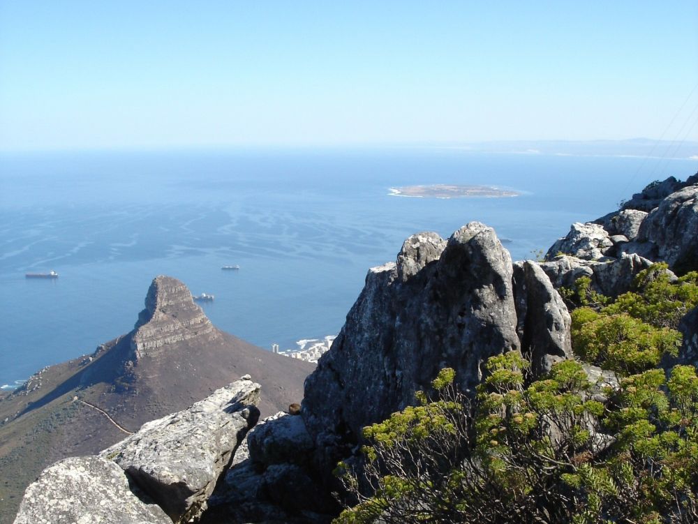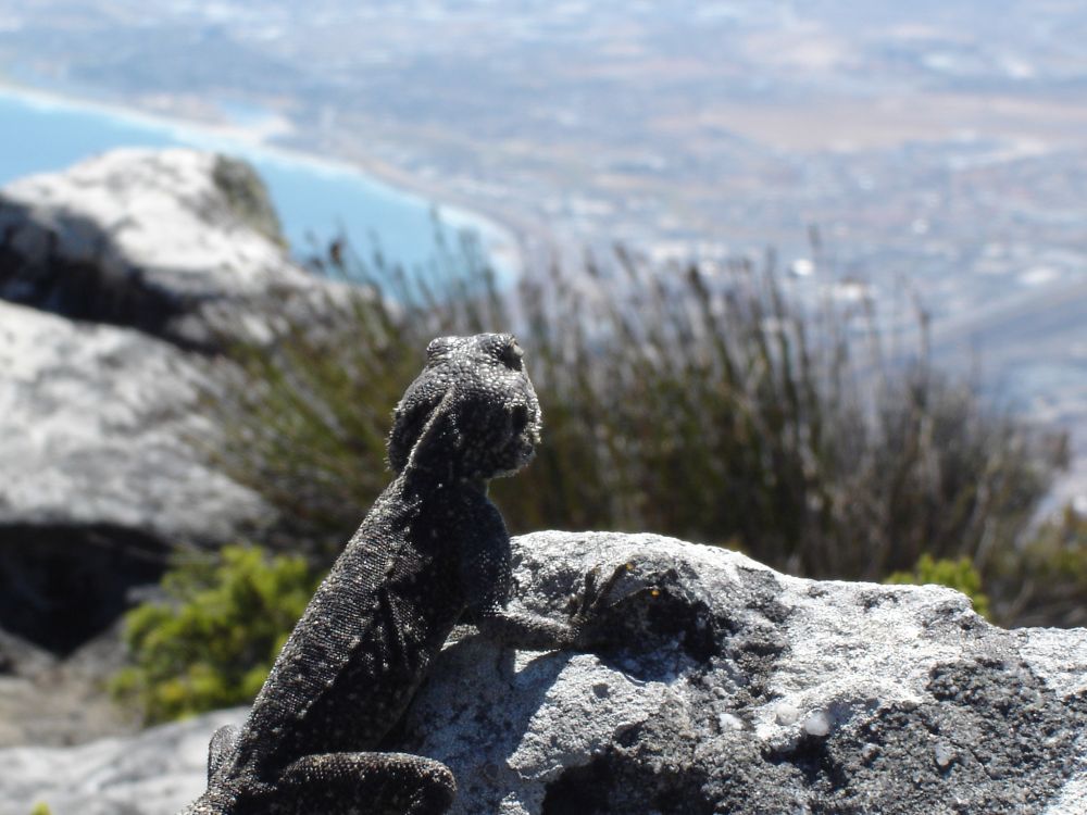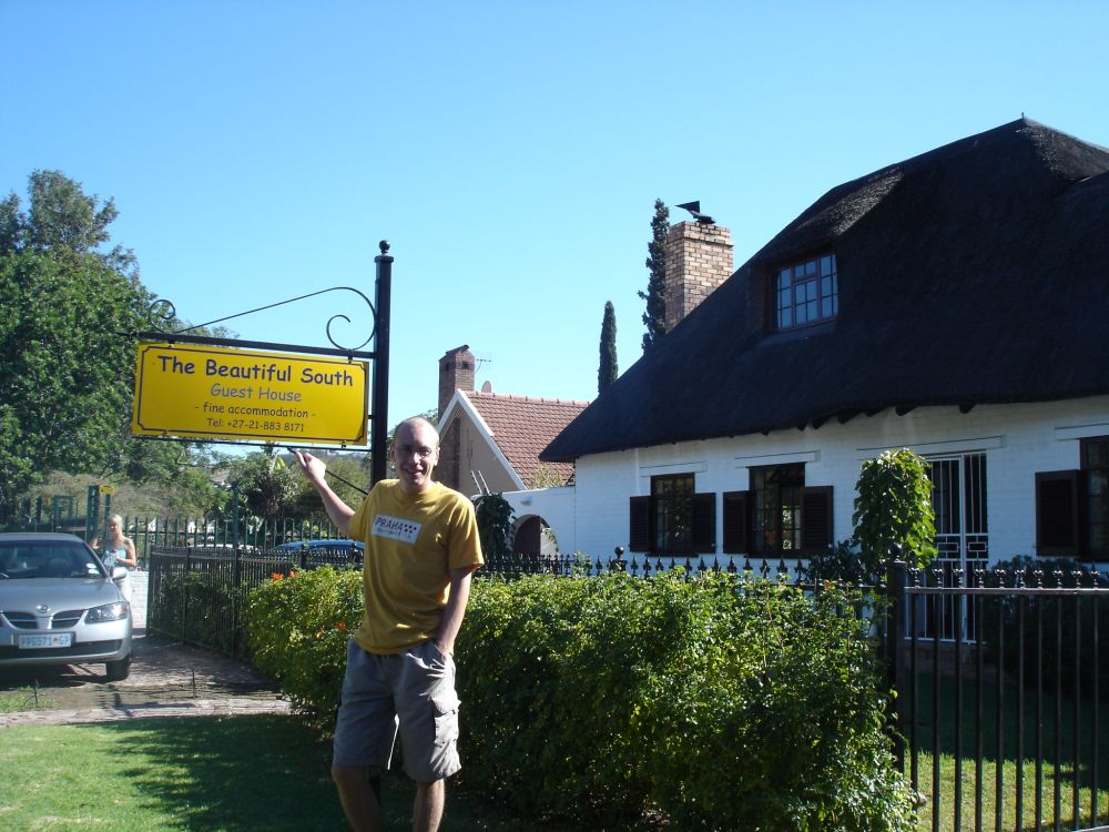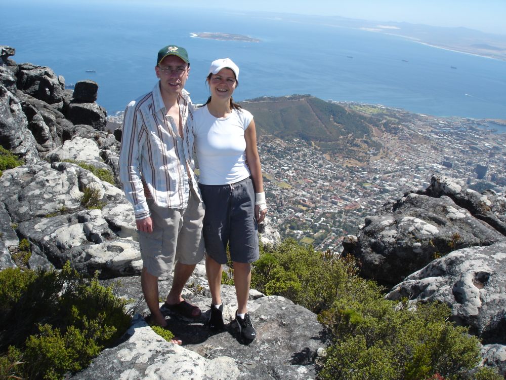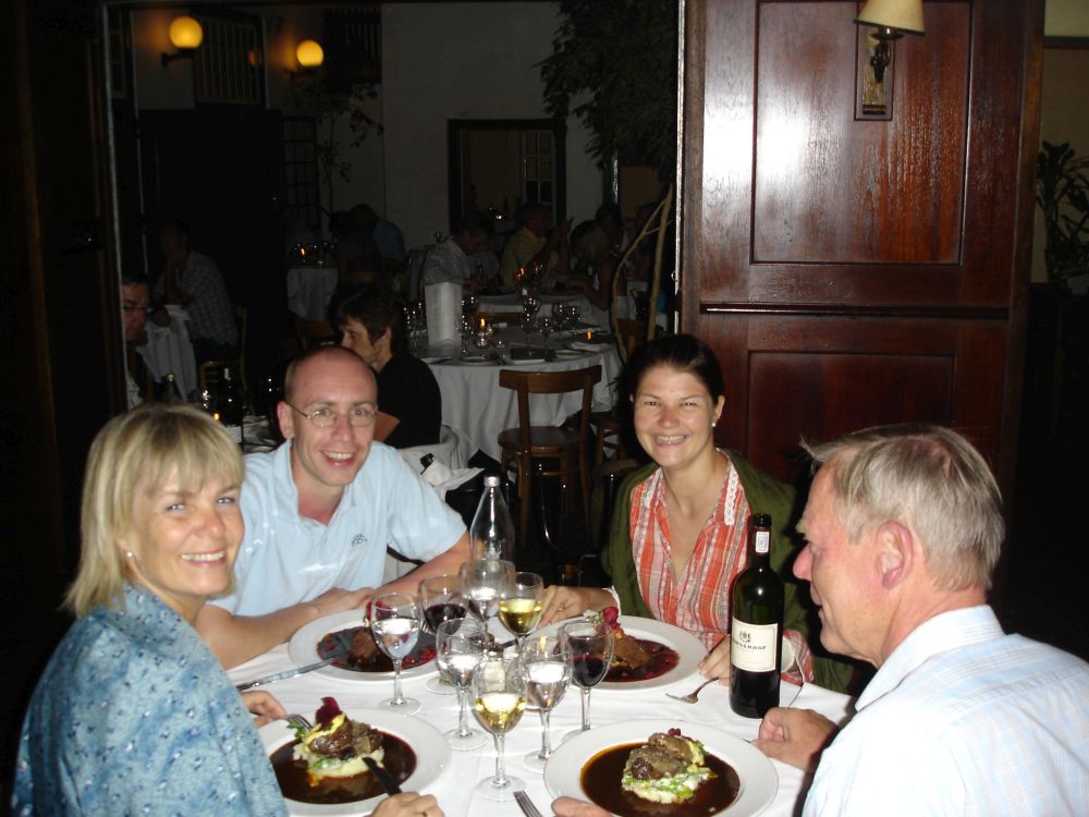 Vi startede rejsen i Cape Town.Her ved det såkaldte Waterfront, med Table Mountain i baggrunden.Vi valgte denne gang at tage kabelbanen op til toppen..Fra toppen af Table Mountain. I baggrunden ses Robben Island hvor Nelson Mandela sad fængslet fra 1964-1982. En af de lokale nyder også udsigten! Min far og Lise nyder byrundturen fra toppen af bussen.Picnic på en af Cape Towns nærliggende strande.Ikke det værste sted at tilbringe sådan en februar-dag..Er der noget Sydafrika (også) kan, så er det god mad og vin til yderst rimelige penge..Vi tog en dagsudflugt til bl.a. Boulders Beach små 40 km syd for Cape Town.Den smukke strand er det sted i verden, hvor du kan komme tæt på de små afrikanske pingviner. Brillepingvinerne lever langs Sydafrikas vestkyst og på mindre afrikanske øer. Det er den eneste pingvinart der yngler i Afrika.Er gået i pingvin-stilling.. ellers var jeg aldrig kommet så tæt på… (ps. det er mig længst til højre).