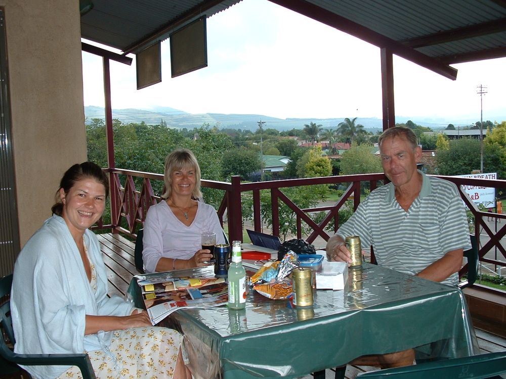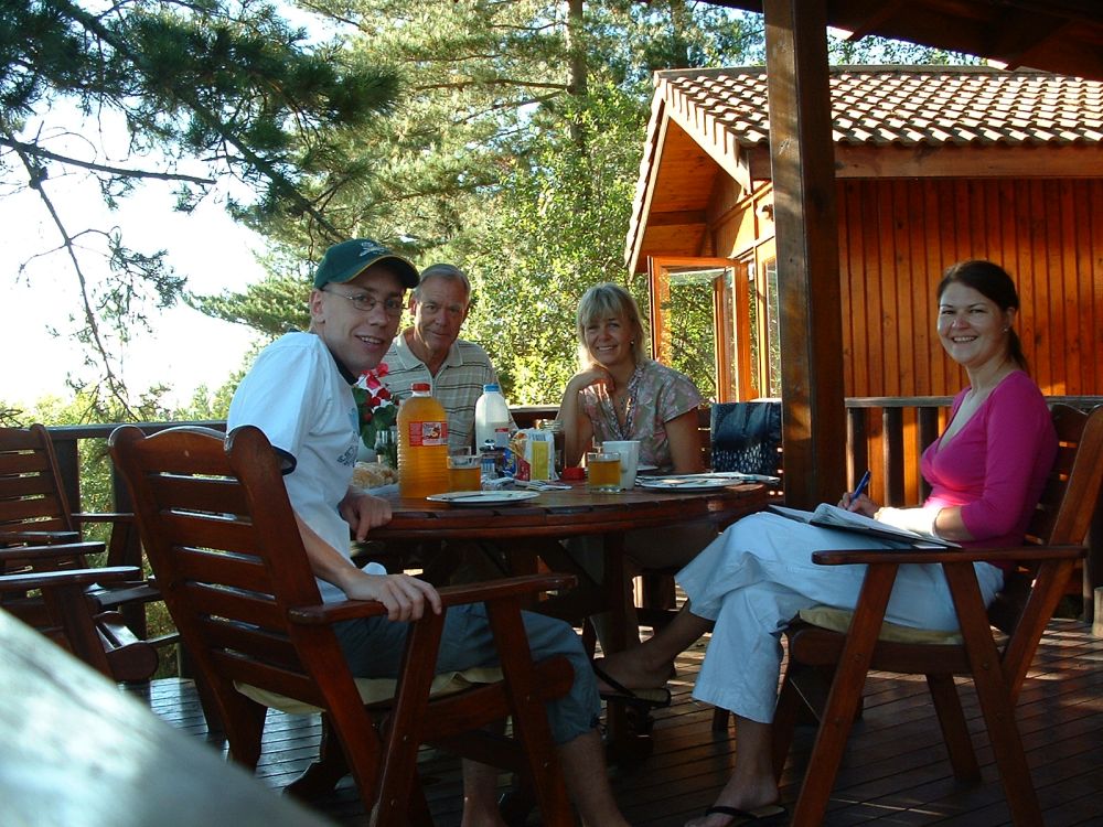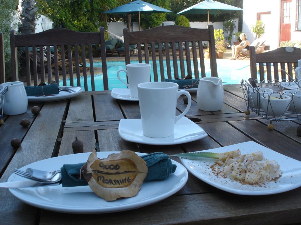 I Knysna havde vi booket denne hytte hjemmefra – det kom vi ikke til at fortryde.Tina nyder udsigten og stilhedenEfter et visit i supermarkedet så fik vi selv lavet aftensmaden i hytten.Udsigten fra soveværelse – det var sgu en OK måde at vågne op på.... efterfølgende morgenmad på terrassen.