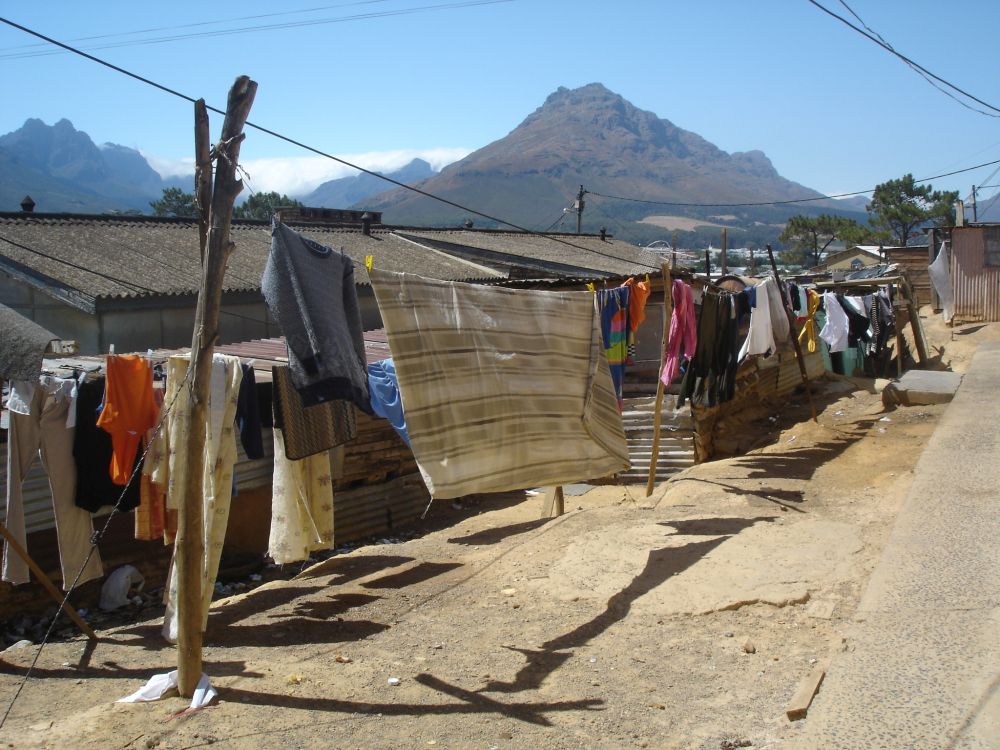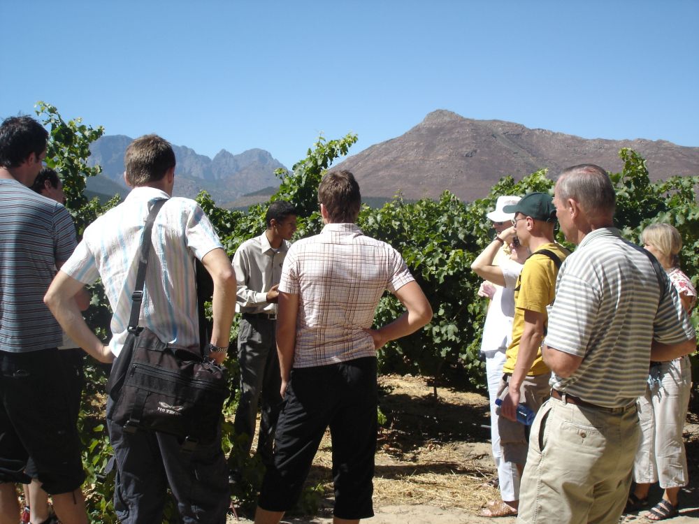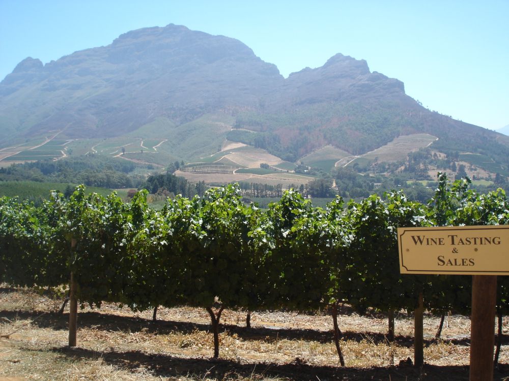 Vores skønne B&B i Stellenbosch, hvor vi tilbragte 2 super gode dage.Stellenbosch er den næstældste europæiske bosætning i provinsen Western Cape i Sydafrika efter Cape Town.Vi tog på en guidet tur til den lokale township.Vores guide der viste os rundt. Kasserne i baggrunden er postkasser.Der fejes foran den lokale købmand.Et peep ind i et af husene.Lokale, nysgerrige børn.Og dagen efter på vinsmagningstur – noget af en kontrast må man sige..Stellenbosch–, Paarl– og Franschhoek–dalene udgør Cape Winelands..… som er den største og vigtigste vinregion i Sydafrika.Den samlede sydafrikanske vinindustri producerer omkring en million liter vin om året, og landet placerer sig dermed i top-10 over de mest vinproducerende lande i verden.