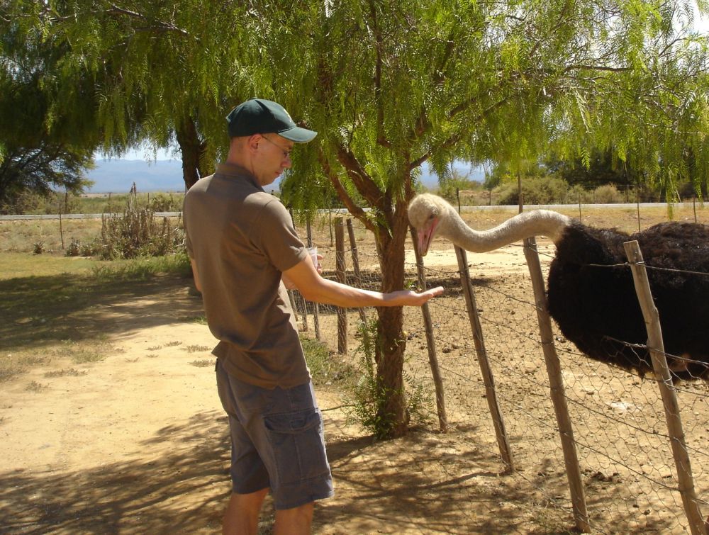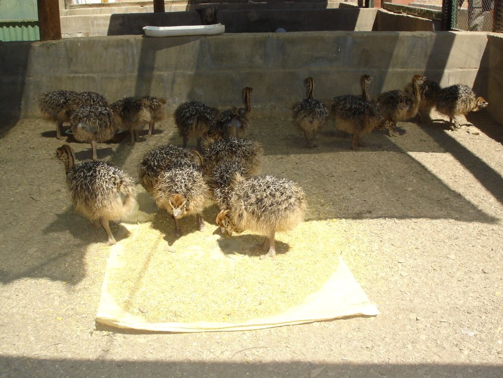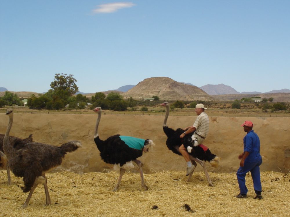 Oudshorn er kendt for sine mange strudsefarme..Her nogle strudsekyllinger.Strudsen er verdens største fugl. Den kan ikke flyve, men den kan tilgengæld løbe op til 70 km i timen, og er derfor verdens hurtigste tobenede dyr.Hvis strudse-galop nogensinde bliver en olympisk diciplin, så er jeg klar til at forsvare de danske farver.