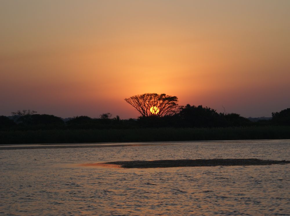 Os foran Amazulu Lodge som var vores hjem i 6 dejlige dage i St. Lucia.Eftermiddagshygge ved poolen.Skiltene skal man tage alvorligt! Flodhesten er det dyr i Afrika der dræber flest mennesker om året (når man ser bort fra (malariamyggen). Flodheste er tit set på hovedgaden i St. Lucia i de sene aftentimer. En aften på vej hjem fra restaurant så jeg så en mor med sin unge på en parkeringsplads mellem hovedgaden og floden!!En bådtur på floden er en perfekt måde at tilbringe en eftermiddag på når man er i St Lucia. Fra dækket kan man nyde en kold øl mens.... flodhestene bevæger deres tøndeformede krop op ad vandet!Sejlturens finale er naturligvis den smukke solnedgang!Mens pigerne tog på en ridetur, tog drengene en tur på stranden.En pind og lidt sand var ingredienserne for et par timers underholdning. Ebbe-Emil gik meget op i hvornår vandet fra bølgerne vaskede vores dyr væk. Her har jeg tegnet et pragteksemplar af en elefant.På safari i den nærliggende St Lucia Wetland NP. Her en stor flot Kudu. (Forskellen på hanner og hunner er at hannerne er “the horny once”…)Jeg har endnu ikke overværet et “kill” på nogle af mine safari-ture. Men en bushbuck, som denne var tæt på at blive mit første.. da en pludselig hoppede ud foran bilen. Jeg bremsede, men for sent og ramte det stakkels dyr! Efter at dyret havde sundet sig lidt på vejen foran vores bil, fortsatte den dog i løb. Men den så ikke helt god ud – tvivler på den ville overleve mange nætter i den vilde natur.