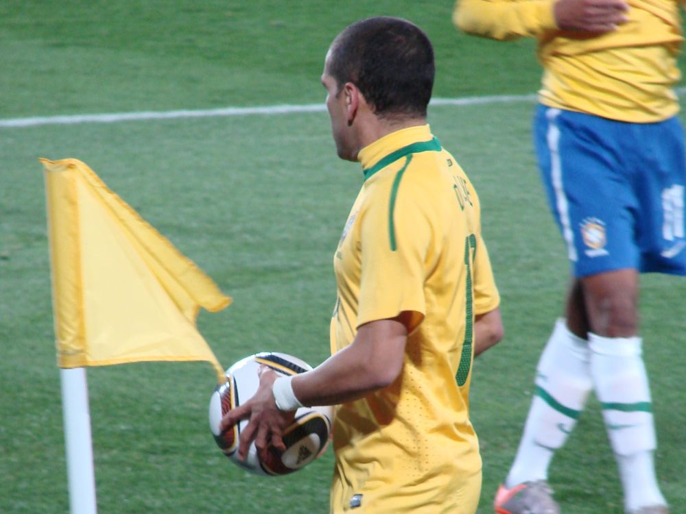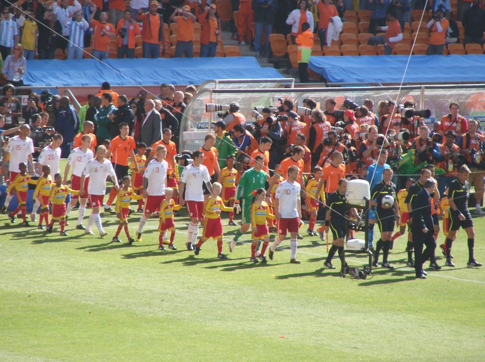 Klar til kamp med 2 langærmet trøjer, en hættetrøje og jakke – jeg frøs stadig!Brasilien – Nordkorea, på alle måder to modsætninger der mødes.Brasiliens Dani Alves tager hjørnespark ca. 15 meter fra os