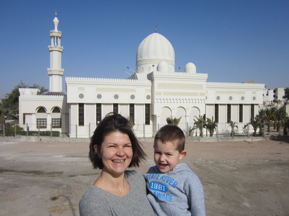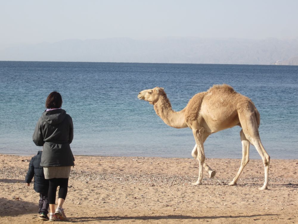Aqaba er Jordans eneste kystby, og er blevet et populært turistmål pga. af det milde vinterklima og de gode dykkermuligheder i Rødehavet. At der så ligger flere oplagte og interessante udflugtsmål i umiddelbar nærhed af Aqaba var medvirkende til at vi hoppede med på flyveren denne vinter.Ikke den slags badedyr man normalt ser på stranden! Byens centrale Moské.