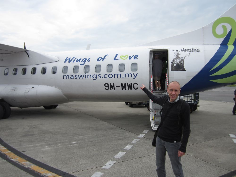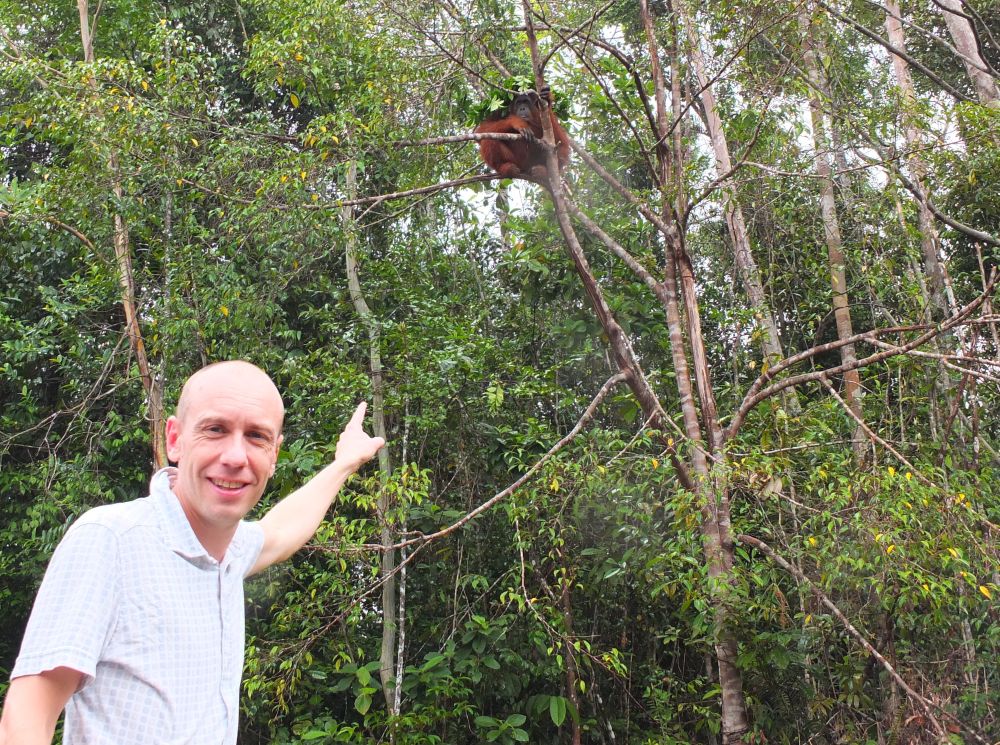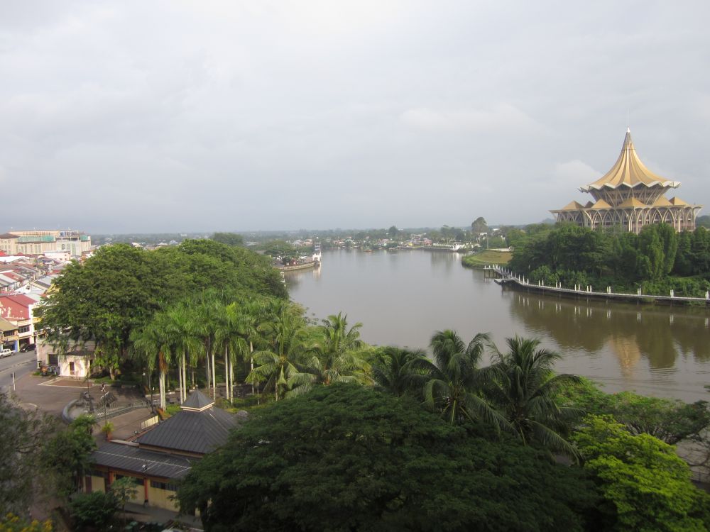 I modsætning til andre byer i området blev de fleste af Kuchings historiske bygninger skånet under anden verdenskrig. Mange af dem er tilmed blevet nydeligtrestaureret, så en slentretur gennem byens overskuelige centrum, der slænger sig langs med Sarawak-floden, er en behagelig oplevelse. Men byen er først og fremmest base for udflugtsmål i umiddelbar nærhed af byen. Et af disse udflugtsmål er Semenggoh Wildlife Center, hvor man hjælper orangutanger med at tilpasse sig livet i junglen efter at have været ulovligt tilfangetagne. I Semenggoh er orangutangerne ”semi wild”, dvs. de lever i junglen og kommer oftest kun til centret, når det er fodringstid, og man kan derfor ikke være sikker på at se de dem. En flok lokale skolebørn var på udflugt denne dag. En større mor har søgt læ for regnen under et par blade i træet. Da regnen stoppede kom den sammen med sin unge ned fra træet og vi måtte gå et par skridt tilbage for ikke at stå i vejen for dem. Min kollega Lars får et close up! FED oplevelse at komme så tæt på! Det blev tid til at forlade Kuching. Fortalte at jeg hed Olsen til efternavn, var lillebror og fra Danmark – så fik jeg naturligvis lov til at “fly on the wings of love..”