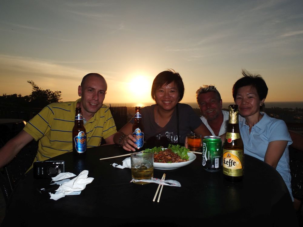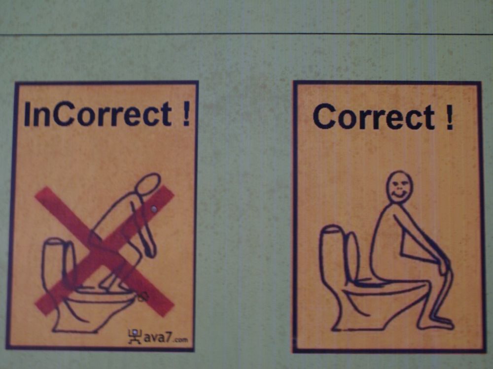 Det var i Miri at man først fandt olie og petroleum og i dag er det stadig ”the big thing” her, og det har gjort nogle af byens indbyggere til nogle af Malaysias rigeste mennesker. Den ene af disse boede i huset i baggrunden bag denne mur, hvor uventede gæster blev tilbudt et nakkeskud! Gæstfriheden var noget større her på Marriott hvor der blev tid til en afslappende eftermiddagsdukkert i poolen.Hele holdet samlet om aftenen til sunset øl fra et udkigspunkt hvor der klogt nok var opført en bar – hyggelige timer i godt selskab.Et populært sted for byens unge der kommer hertil for at se solen forsvinde i det Sydkinesiske Hav.Herefter tog vi på en lokal fiskerestaurant/gadekøkken hvor vi fik ALT godt fra havet. Fantastisk mad og hyggelig stemning.På toilettet var en pæn anvisning til hvordan man bruger denne type toiletter…