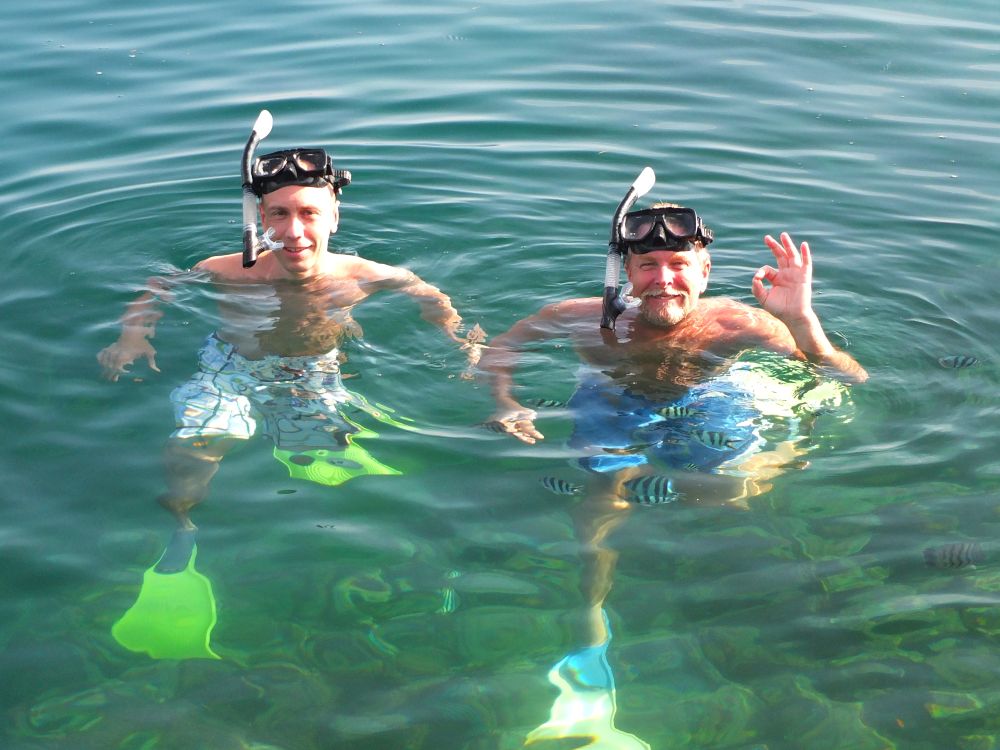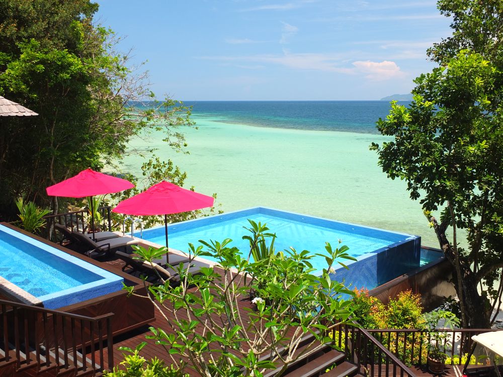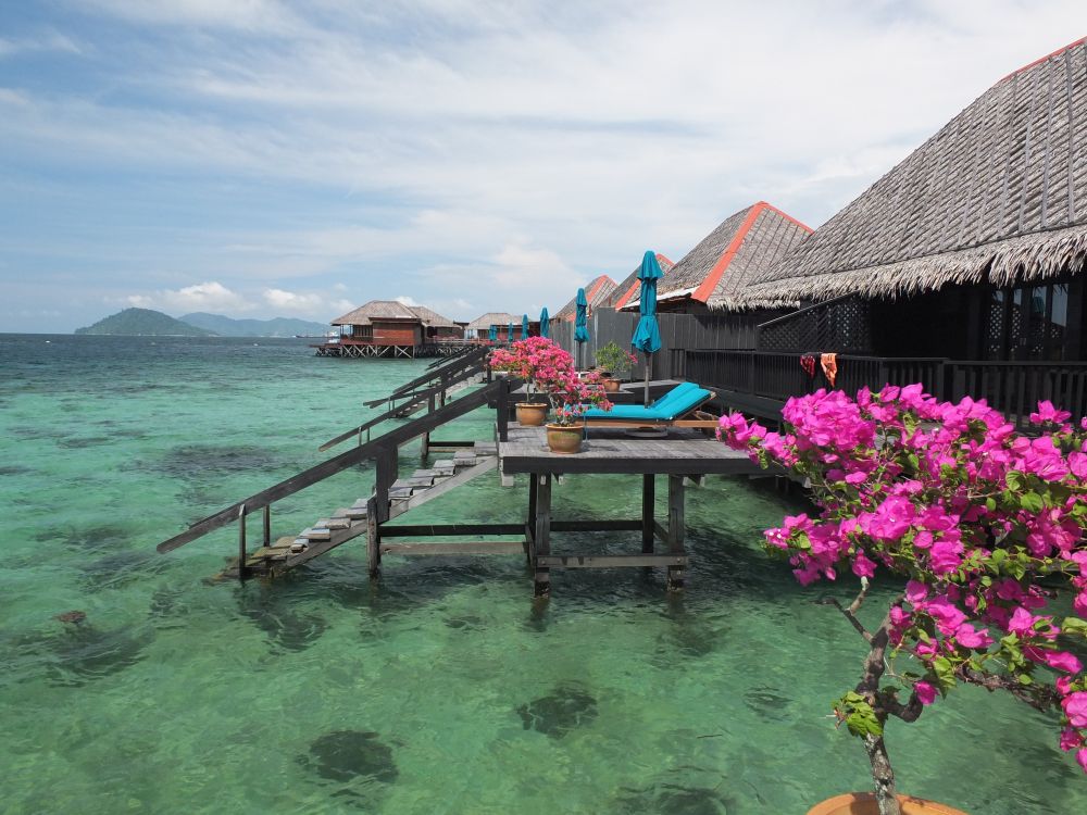 På den ene side af øen ligger Bunga Raya Island Resort, et luksus-resort med deres egen canopy walk i baghaven.Her stødte vi bl.a. på denne haleløse fætter. … og har man så mange penge at man ved man ikke når at bruge dem – kan man da tage et par overnatninger i deres Royal Villa. Vi nøjedes dog med at kigge på!Og i stedet sejlede vi om på den anden side af øen.. ..hvor vi måtte ”nøjes” med denne noget usle indkvartering…;-) Da der ikke var langt til vandet kunne vi jo lige nå en snorkeltur inden morgenmaden. Og med en havtemperatur på den rigtige side af de 30 – er det en meget god måde at få overstået morgenbadningen på.Vi giver et OK-tegn til at afslutte en hektisk og fantastisk uge på Borneo på denne måde.
