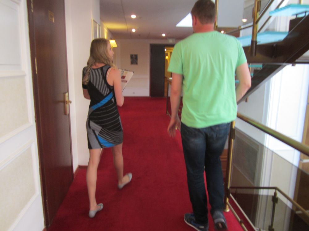 NOVODEVICHY CONVENT / NEW MAIDENS’ MONASTERY: Et stort og smukt kloster midt i Moskva som stort set forblevet intakt siden opførelsen i det 17. århundrede. I 2004 blev klosteret optaget på UNESCOs World Heritage Site.I en kæmpe by som Moskva er det rart at kunne finde et fredfyldt grønt sted og slippe for larmen og trafikken for en stund. Det fandt vi her. Ved siden af klosteret ligger en kirkegård hvor mange prominente navne ligger begravet, bl.a. Nikita Khrushchev og Boris Yeltsin. Hvad der også er med til at gøre Moskva rigtig interessant, er blandingen af byggestile. Fra de flotteste kirker og monumenter, til supermorderne bygninger og så disse store betonklodser som også stadig findes i stor stil. De russiske piger skal have ros for at klæde sig efter sæsonen, og da vi uheldigvis var der på årets hidtil varmeste dag, så havde vi i selv de mest tarvelige områder, stadig noget at kigge på! Hotel-fremvisning i Moskva, udført at en ganske ung pige som ikke kunne tre ord engelsk – så det var ikke sååå meget vi fik ud af den rundvisning. Vi lovede dog hinanden at vi skulle have et billede… så her er det!