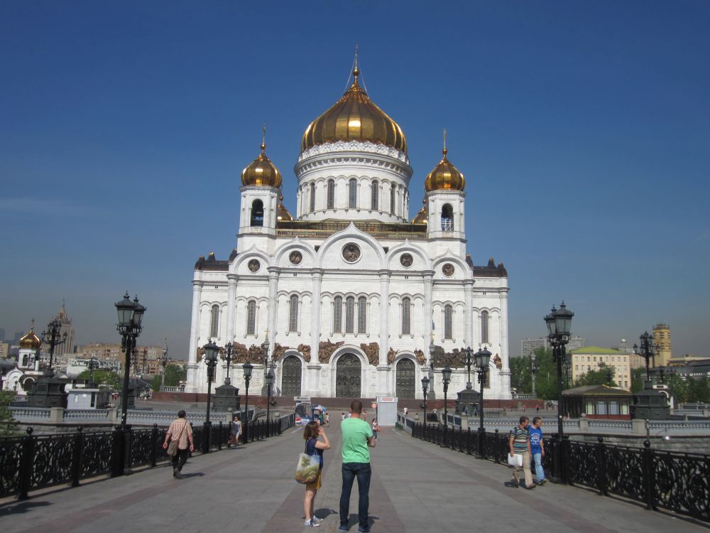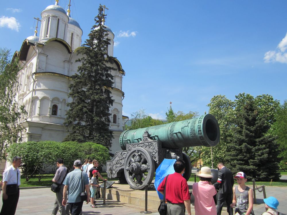 Jeg var faktisk en smule skuffet over vores rundtur i Kreml. Måske fordi mange af de mest kendte og historiske bygninger befinder sig på den røde plads, og ikke i Kreml. Denne godt 6 meter lange kanon blev støbt tilbage i 1586 og er aldrig blevet brugt (i krig!)Zar-klokken, ved foden af Ivan Velikij-klokketårnet, er verdens største klokke. Den vejer 200 tons og er 14,6 m høj. Under en brand i 1737 faldt den ned, og da man hældte vand på den, for at køle den af, faldt et stykke på 11,5 ton af. FRELSEREN KRISTUS-KATEDRALEN. Her er en kirke med en anderledes og noget bizar historie: Grundstenen til kirken blev lagt i 1839 og den udvendige opførelsen stod færdig i 1860. Indretningen af det indvendige med bl.a. malerier af de bedste russiske malere fortsatte næsten tyve år, og katedralen blev først indviet i 1883. Efter Den Russiske Revolution i 1917, blev stedet hvor katedralen lå, valgt som det sted hvor der skulle opføres et monument for socialismen i form af en gigantisk statue af Lenin. Så i 1931 blev Frelseren Kistus-Katedralen sprængt i luften og jævnet med jorden! Bygningen af monumentet blev dog afbrudt pga. finansielle mangler, oversvømmelse og krig. Det oversvømmede hul til fundamentet blev således omdannet til et stort offentligt svømmebassin!! Efter sovjettiden modtog den russiske ortodokse kirke så tilladelse til at genopbygge katedralen i februar 1990, og den færdiggjorte Frelseren Kristus-Katedralen som den ser ud her blev indviet i 2000…