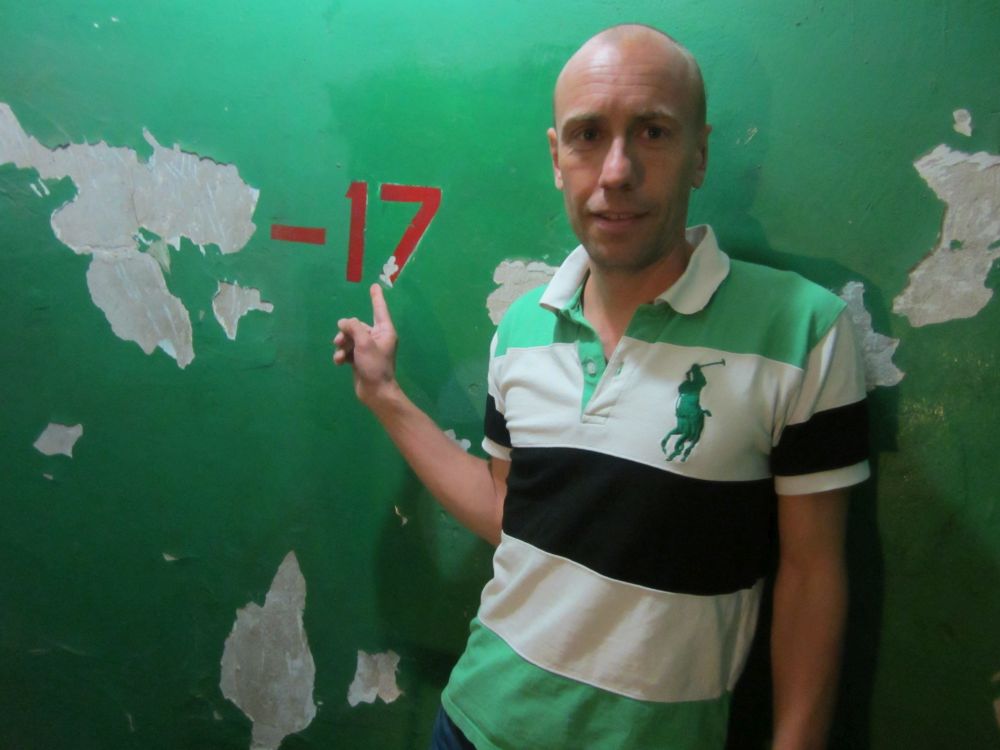 Siden 2006 har Bunker 42 været privatejet og fungerer i dag som museum. Hele området er på mere end 7.000 m2 og ligger 65 meter under jorden! Indgangsbilletten var dette stykke papir med et billede af en mand med gasmaske – lidt svært at se om det rent faktisk er mig på billedet.. Trapper førte os mere end 65 meter under jorden til -17. etage. “State of the art” kommunikations udstyr anno 1956.Vores guide (ham til venstre!) og mig med hver vores Kalashnikov. I forlængelse af museet er der også lavet denne lounge-artige bar som bruges til firmaarrangementer og andre events. Cool sted at holde en firmaudflugt!Sidste aften skulle vi naturligvis en tur i Cirkus. When in russia… Det var en OK oplevelse, men vi valgte dog at smutte i pausen.Nogle ting var ret imponerende, andre temmelig bizarre, bl.a. da en mand jonglerede med 4 levende papegøjer..!!En vigtig observation vi hurtigt gjorde i Rusland, var at ALLE mænd scorer opad… Dette er et godt eksempel!