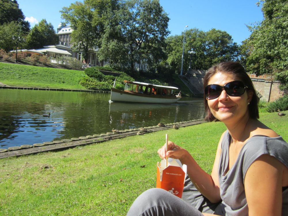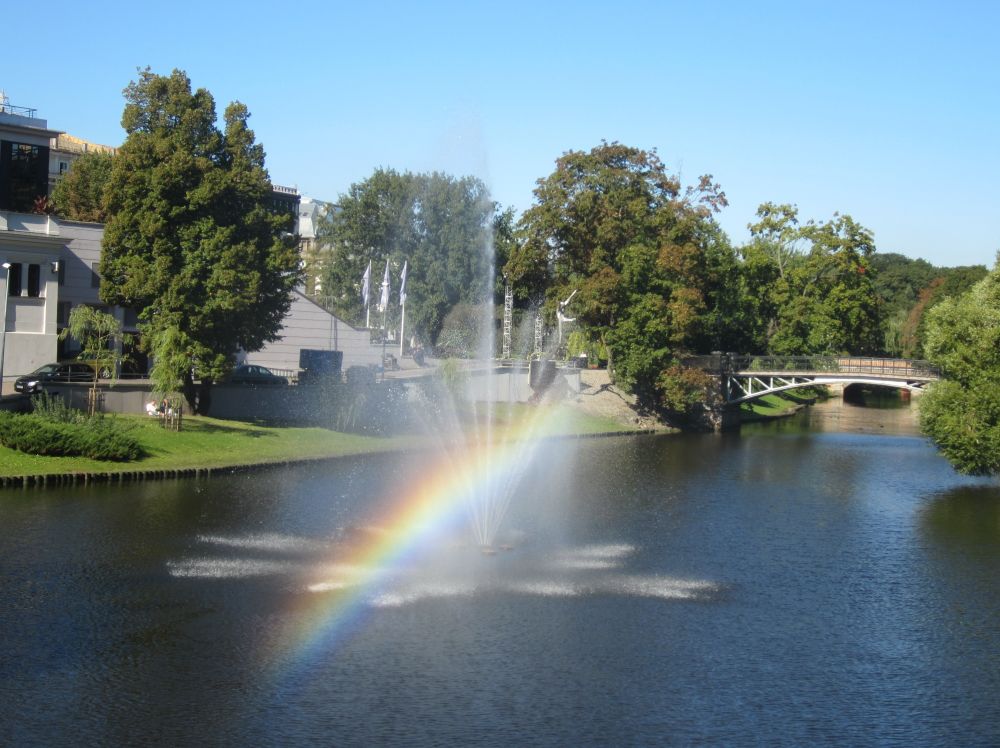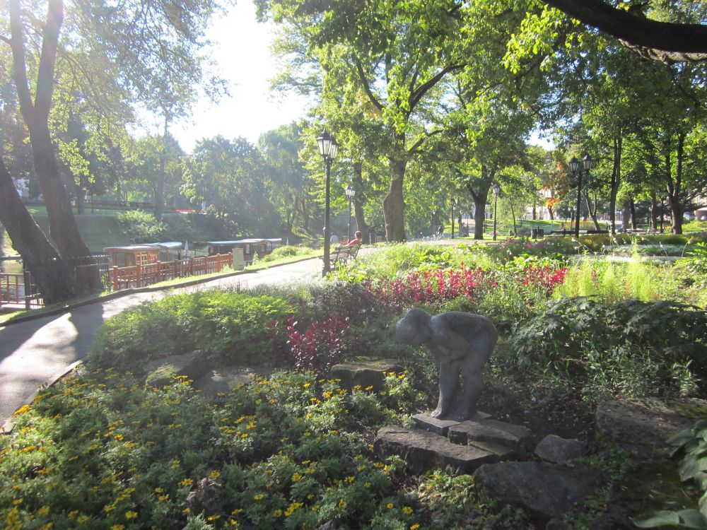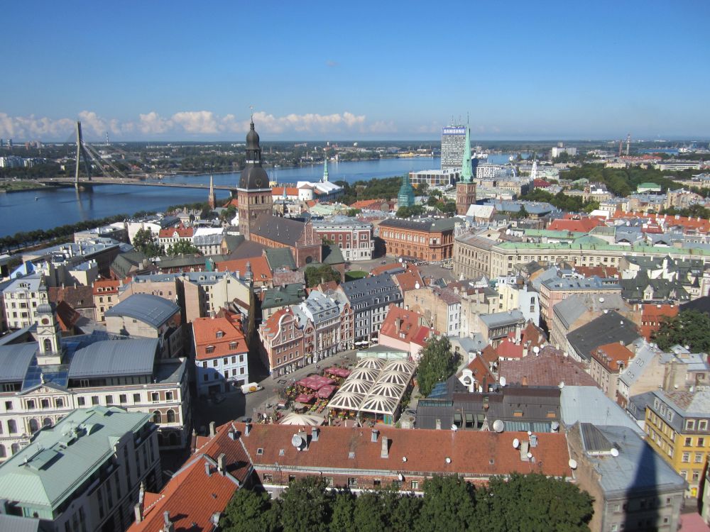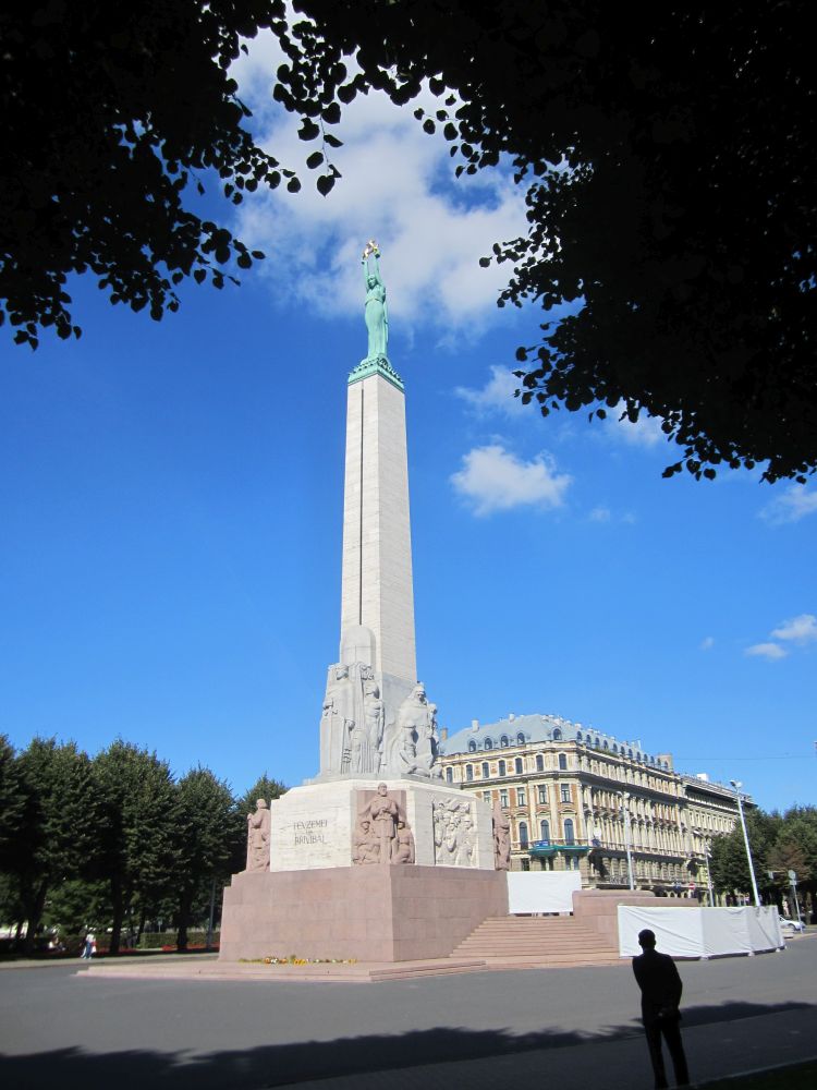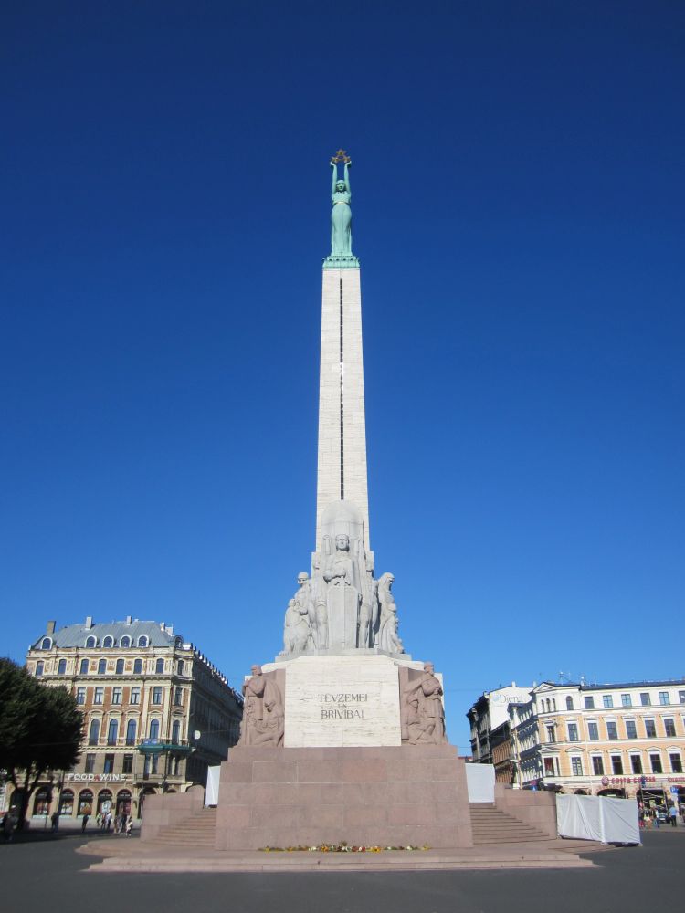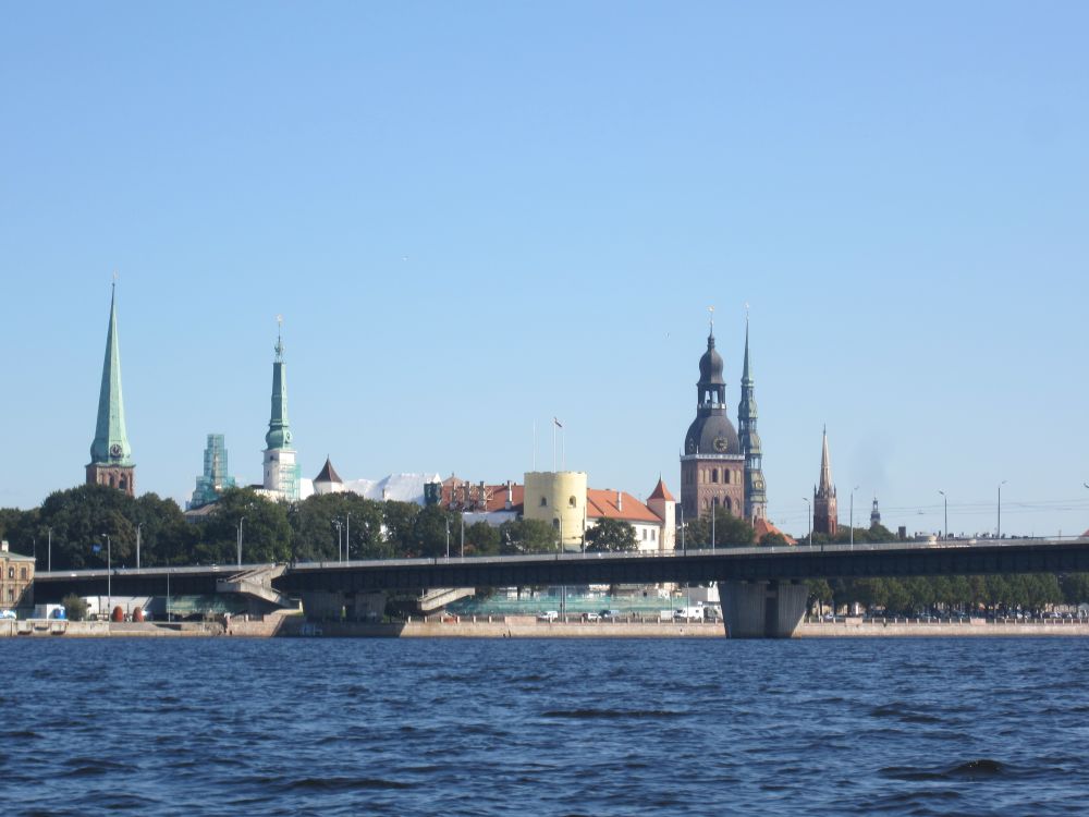 Peterskirken (den lettiske version) blev bygget i 1408. Kirkens tårn var faktisk Europas højeste indtil det blev bombet i 1941under 2. verdenskrig. Det nuværende tårn er 122 meter ogindeholder en elevator, primært til turister – så den måtte vi prøve.Herfra havde vi denne udsigt ud over den gamle bydel og floden… ..og til den anden side Frihedsmonumentet og bag den vores hotel. Vi købte en lunch box med fra et take away sted og fandt en solrig plet i parken. Hvorefter vi tog på en stille og charmerende kanalrundfart.. .. som bl.a. bragte os forbi National Operaen.. .. og ud på floden Daugava, der løber gennem Riga. Floden udspringer i det centrale Rusland og løber gennem Hviderusland, Litauen og Letland indtil den rammer Østersøen. Frihedsmonumentet blev rejst i 1935 for at ære dræbte soldater under den lettiske uafhængighedskrig (1918–1920), og betragtes som et vigtigt symbol på Letlands frihed og uafhængighed. Allerede 5 år senere under den sovjetiske besættelse af Letland i 1940 overvejede man fra sovjetisk side at rive monumentet ned. Det blev dog aldrig ført ud i livet og derfor fungerer det 42-meter høje monument i dag som et offentligt samlingspunkt for det lettiske folk og bliver også brugt ved officielle ceremonier. Så følger godnathistorie nummer 2, som hedder ”Legenden om grundlæggelsen af Riga”: