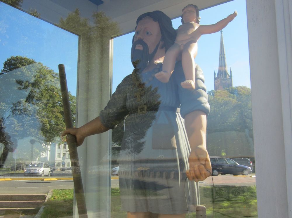 I gamle dage, var der en meget stor mand som hed Kristaps. Han boede på den højre bred af Daugavafloden, og tjente til dagen og vejen ved at bære folk over floden på sin ryg. En nat vågnede Kristaps til lyden af barnegråd på den venstre bred af floden. Han gik over og samlede den grædende baby op og bar det over floden. For hvert skridt blev barnet tungere og tungere og Kristaps måtte bruge alle sine kræfter på at bære barnet ind til flodbredden. Med de sidste kræfter lagde Kristaps barnet på et tæppe foran ildstedet i sin hytte og faldt derefter i søvn. Næste morgen da Kristaps vågnede, opdagede han at barnet var væk – og at der i stedet stod en kiste fyldt med guld der hvor barnet havde ligget. Kristaps rørte ikke en eneste guldmønt i hans levetid, og det efterladte guld blev brugt til at bygge Riga på stedet, hvor Kristaps hytte dengang stod.