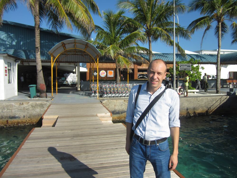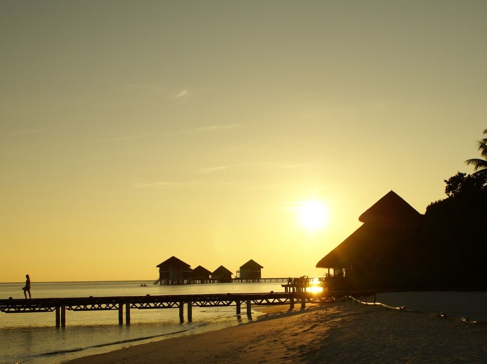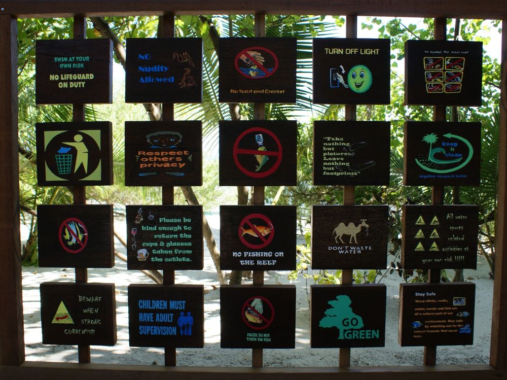 Netop ankommet til Maldiverne, Asiens mindste land – både målt på landareal og indbyggerantal (ca. 300.000). Landet blev uafhængigt (fra Storbritannien) i 1965 og blev en republik 3 år senere hvor landet fik sin første præsident. Lufthavnen ligger på en nabo-ø til hovedstaden Malé, og lufthavnen og dens tilhørende bygninger udgør hele øen. Derfor er vandet og de shuttlebåde der tager turister ud til øerne eller de lokale over til Malé by, det første der møder en når man kommer ud fra lufthavnen. Super charmerende! Første stop for os var en større ø Hudhuran Fushi ca. 45 minutters sejlads nord for lufthavnen/Malé. Selvom værelserne var gode og pæne og udadtil ligner det man gerne vil.. .. så manglede der en god strand på denne ø, og desuden var øen alt for stor i forhold til de forventninger man/jeg har til et ophold på Maldiverne.Så konklusionen var: Resortet var isoleret set fint, men det kunne lige så godt have været et resort i Thailand, Spanien eller på Bali..Trafikken på Maldiverne består udenfor hovedstanden Malé udelukkende af både og (vand)flyvere. På vej til ø nummer to passerede vi øen Thilafushi som er en kunstig ø lidt vest for Malé. I 1991 besluttede man at bygge denne ø til udelukkende at fungere som affaldsforbrænding for hele landets affald! Miljøaktivister antager at mere end 330 tons affald sejles til Thilafushi hver dag! Det meste kommer fra Malé – men ifølge de officielle statistikker bruger en turist på Maldiverne dobbelt så meget affald (3.5kg) end en indbygger fra Malé – og 5 gange så meget affald end indbyggere i resten af landet. Øen har svært ved at følge med og derfor vokser øen med ca. en kvadratmeter om dagen… Efter 45 minutters sejlads tilbage til lufthavnen, et hurtigst pit stop, og så yderligere 45 minutter sydpå, nåede vi frem til Rannalhi... og det var alt man havde håbet på og forestiller sig når man siger Maldiverne. Den forreste bygning er øens café, og de sorte plamager i vandet er stimer af fisk..!Rannalhi ligger på en lillebitte ø som det vel tog 20 minutter at gå rundt om, derfor ingen biler eller andre køretøjer. Bagagen blev bragt til værelserne ved håndkraft eller sækkevogn. I receptionen dette skilt med donts and dos. I modsætning til den foregående ø, så omkransede denne perfekte strand to tredjedele af øen. Som de fleste andre ressorts på Maldiverne har Rannalhi også Water Bungalows som efterhånden er karakteristisk for Maldiverne. .. men med Water Bungalow ville jeg vælge med samme omhu som når du vælger resort.Mulige ulemper ved Water Bungalows opstår hvis der er meget lavvandet og bungalowen ligger over koralrevet – så bliver det næsten umuligt at bade direkte fra din bungalow. Samtidigt kan det være en pæn gåtur fra din bungalow til selve øen og restauranten.. En hejre sidder tålmodigt og venter på en mulig frokost skulle svømme forbi. Er man bange for at få hovedet under vand, behøver man ikke gå glip at livet under overfladen – denne rokke blev spottet fra molen. Tilbage på øens lille café var det tid til at nyde en eftermiddags øl oven på en hård arbejdsdag…Herfra kunne vi øjeblikke senere nyde en at de mest spektakulære solnedgange længe set.Masser af gyldne muligheder for at få dit perfekte solnedgangsbillede.. Her er mine bedste shots.Efter solnedgang kommer nattens rovdyr frem. På Maldiverne er det hajerne som man ved hjælp af et spotlight ned i vandet kunne spotte fra molen. Næste morgen kunne vi fundere over stort og småt, men tænkte ikke på at Maldiverne er det lavest beliggende land i verden – med en gennemsnitshøjde på 1,5 meter, samt det land i verden med det ”laveste højeste punkt” på kun 2,4 meter. Hvis verdenshavene stiger i den takt, som nogle forskere spår, vil Maldiverne være forsvundet i år 2100. For at imødekomme den udfordring besluttede regeringen i 2008 at spare sammen til at kunne købe et landområde på Sri Lanka, som ville kunne huse hele den maldiviske befolkning.Desværre var opholdet på Rannalhi alt for kort – for der kunne jeg godt have brugt mere tid.. Meeen så har man vel en undskyldning for en dag at vende tilbage. Af de godt 1.192 øer som Maldiverne består af, er de 192 er beboet. Godt en tredjedel af befolkningen bor i landets hovedstad Malé som vi igen passerede på vej tilbage til lufthavnen. Og tilbage i lufthavnen hvor der var ca. 50 meter fra kajpladsen til check in-skranken!