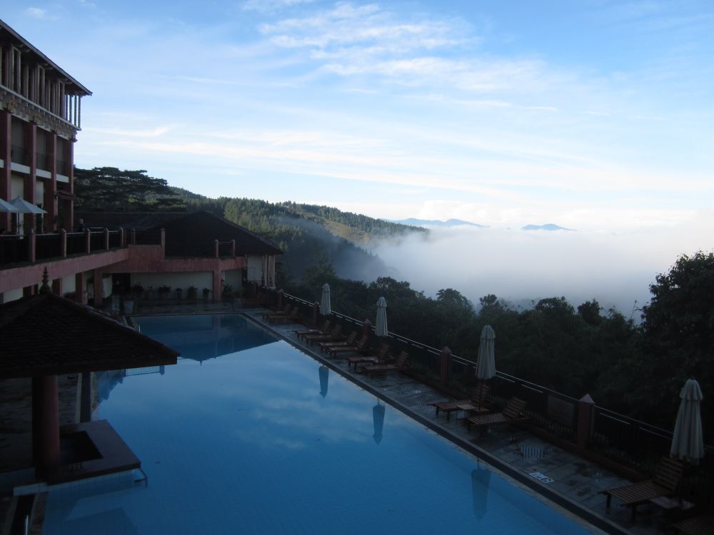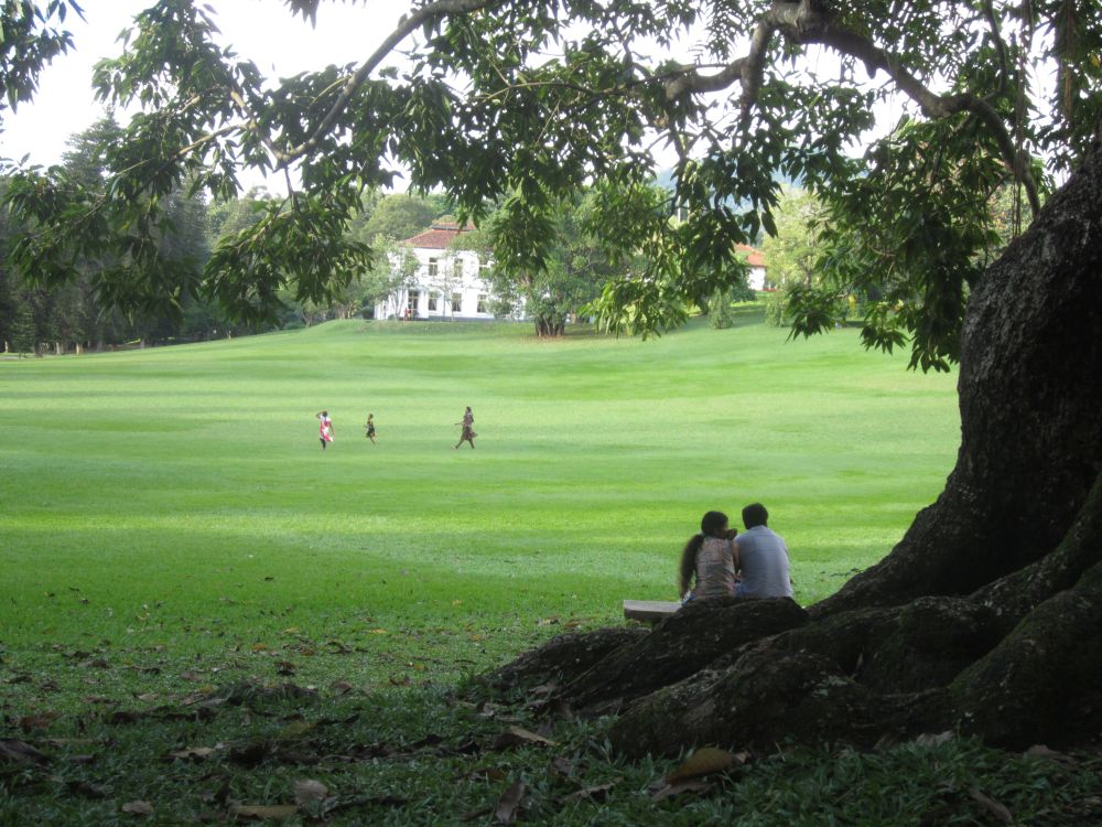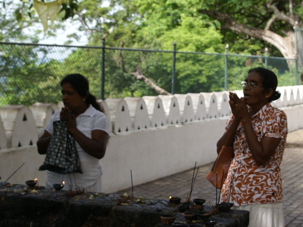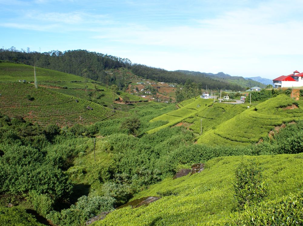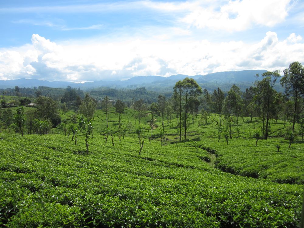 Et gadebillede fra byen Kandy, som jeg faktisk var en smule skuffet over.Vi lagde vejen forbi byens Botaniske have, normalt besøger jeg kun sådan et sted hvis der ikke er andet at se i en by.. .. men når det er sagt så var den Botaniske Have i Kandy faktisk et besøg værd og et dejligt grønt og fredeligt åndehul i en travl by. Et andet ”must see” i Kandy er Dalada Maligawa, Tandens Tempel. Det siges at Buddhas øvre venstre hjørnetand er opbevaret her i templet! Ifølge myten blev tanden smuglet til Sri Lanka i en prinsesses hår og bragt til Anuradhapura. Af frygt for indiske plyndringstogter bragte de singhalesiske konger den til det royale palads for at få den opbevaret i sikkerhed… Tilstrømningen af pilgrimme kulminerer i juli-august, hvor en kopi af relikvieskrinet føres frem på ryggen af en rigt udsmykket elefant, det skulle efter sigende være et ret flot optog.Buddhister på Sri Lanka er af den overbevisning, at de mindst en gang i deres liv skal på en pilgrimstur til dette sted. Her foreviger et par munke deres oplevelse med deres smart phones.Udsigten fra vores hotel i Kandy på en tidlig morgen. Desværre tjekkede vi ind kl. 21. om aftenen og forlod allerede hotellet næste morgen, så det var ikke meget tid vi havde til at nyde de smukke omgivelser (eller poolen for den sags skyld). Vi tog til togstationen i Peradeniya lidt uden for Kandy for at tage toget længere ind i højlandet til Nuwara Eliya. Vi satte os godt til rette i vores første klasses air-con. togvogn, hvorfra vi kunne nyde det flotte grønne landskab. Men vi fandt hurtigt ud af at det var meget sjovere og mere spændende at stå ude ved de manglende døre..… sammen med de lokale.. .. som smilede sødt til en når man spurgte til et foto shot. Vi begav os langsomt op i hjertet af Sri Lankas ”Te-Land”, og på vejen passerede vi gamle nedlagte togstationer fra den Britiske kolonitid. Et par skolebørn på vej hjem fra skole vinker til os i forbifarten. Te produktionen blev introduceret i Sri Lanka af Britten James Taylor som fandt at luftfugtigheden, de kølige temperaturer og passende mængder nedbør i denne del af Sri Lanka udgjorde et ideelt klima til at producere te.I dag udgør te produktionen et af de vigtigste erhverv og genererer årligt ca. 700 millioner USD til landets økonomi. Mere end 1 million mennesker arbejder direkte eller indirekte med te og Sri Lanka er i dag verdens fjerdestørste producent af tePå Sri Lanka dyrkes der 3 forskellige te-sorter: – Ceylon black tea som er en af landets specialiteter og dyrkes flere steder på Sri Lanka. – Ceylon green tea hvor det meste eksporteres til Nordafrika og Mellemøsten. – Ceylon white tea som er den dyreste te og som første gang blev dyrket her i Nuwara Eliya.