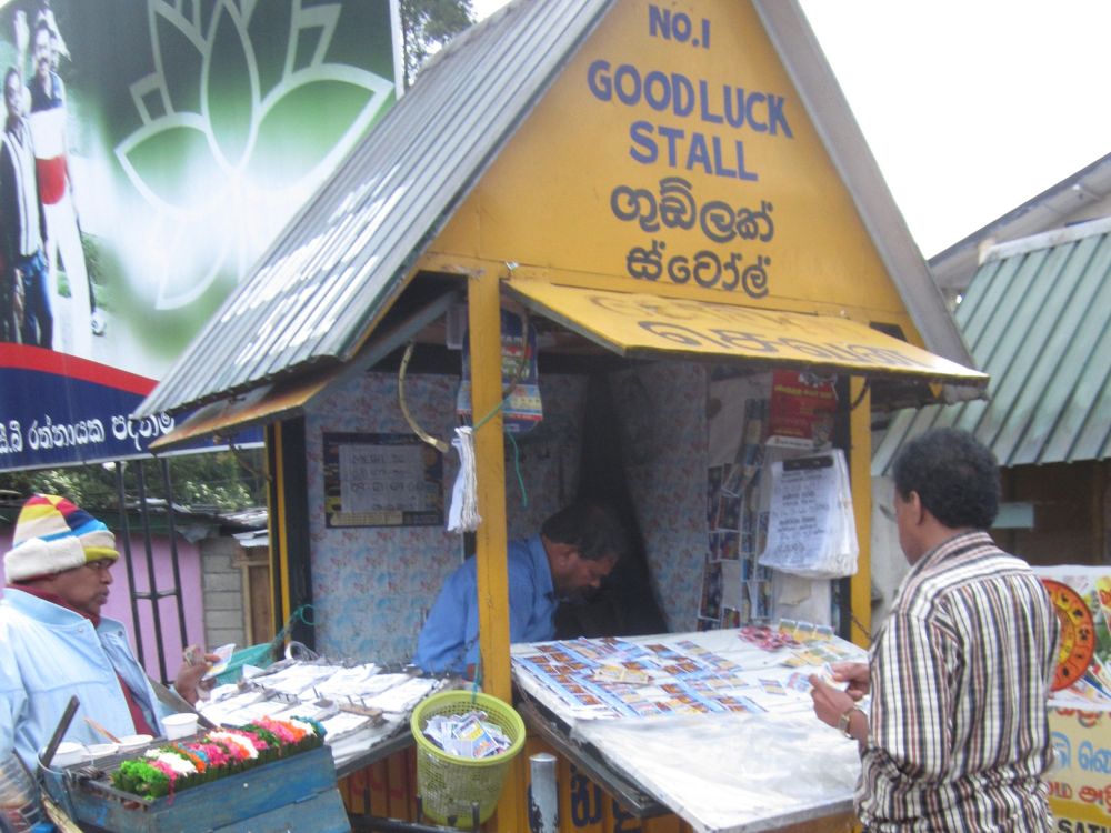 Nuwara Elia kaldes også mini-England, og ligger i hjertet af Sri Lankas teproduktion. Byen er omgivet af bjerge og grønne teplantager og er i dag et eftertragtet feriested og mange af de gamle engelske kolonibygninger er stadig bevaret med deres bindingsværk og rosenhaver.Vores lille gåtur rundt i byen tog os forbi byens marked.. .. og forbi ”Good Luck Stall – number 1”, hvor en lokal prøver hans held med en lotto kupon.På min sidste aften med klikken endte vi med en ren herre-aften hvor drengene spiste i ét lokale og pigerne i et andet – på samme restaurant! Vi blev ikke uvenner, det var noget dress code vi ikke kunne leve op til i ”det fine lokale”.Næste morgen var skyerne væk og te-landet viste sig igen fra sin smukkeste side, med bjerge og temarker.. og enkelte vandfald undervejs. På sidste frokost stop inden lufthaven kunne jeg overvære optagelserne til endnu en sæson af ”The Amazing Race”.. .. hvor rejsende leger skattejagt med forskellige poster og udfordringer undervejs – nu var turen kommet til Sri Lanka.