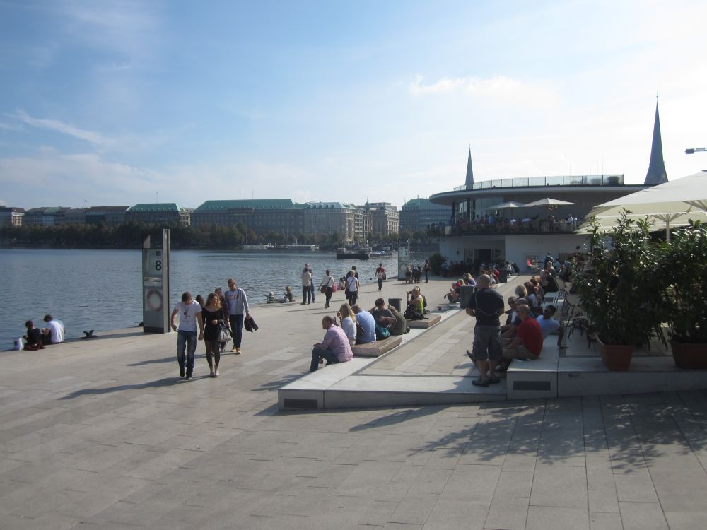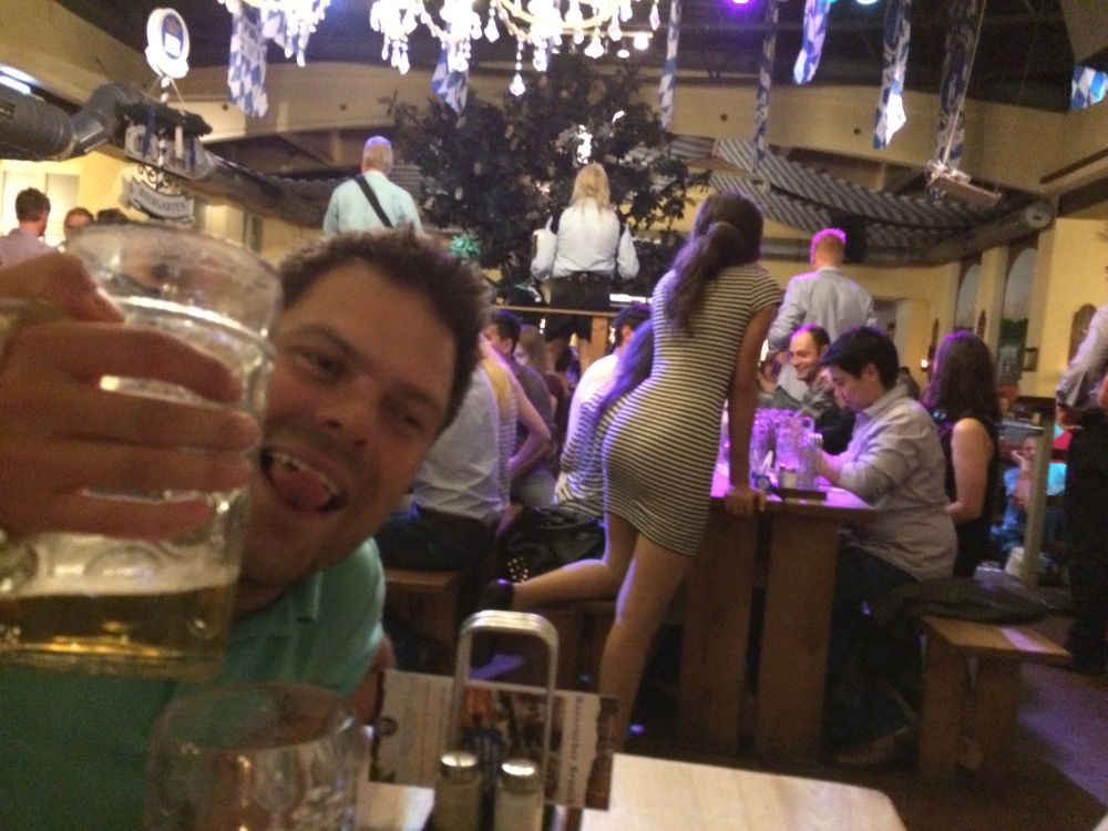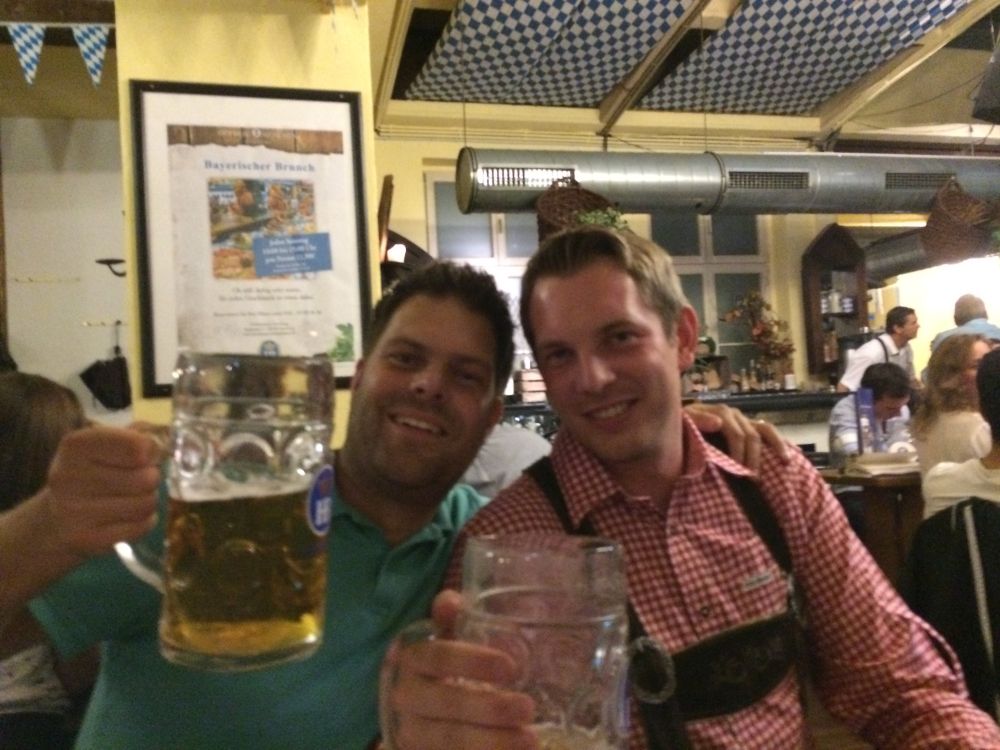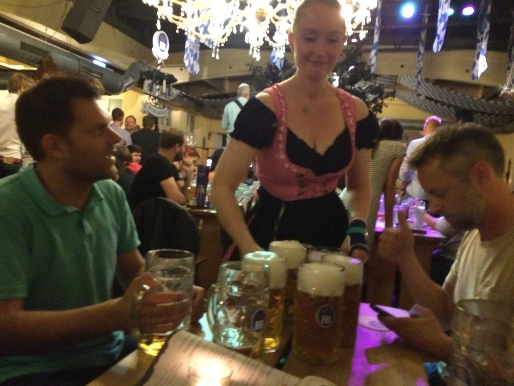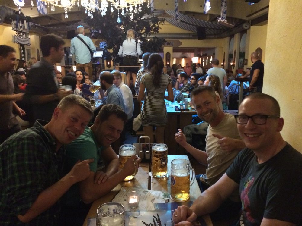 Kort før afrejse gik det op for os at den årlige oktoberfest startede i netop den weekend vi havde tænkt os at tilbringe i Tyskland – og at oktoberfest også er noget man fejrer i Hamburg. Så vi fandt naturligvis et sted med den rette stemning, læs live musik, fadøl i literkrus og piger med overarme store nok til at kunne bære fem ad gangen (i en hånd naturligvis).Efterhånden som liter-krusene blev tømt, steg stemningen alt imens… … at pigerne om de omkringliggende borde så mere og mere attraktive ud! (Eller i hvert fald hende her).Derfor var den en stor fornøjelse at se billederne dagen efter, og konstatere at det ikke kun var de flere og flere øl der gjorde udslaget.Vi blev da også så tilpas fulde at vi, trods vores ringe tyske, faldt i snak med de lokale…Dagen efter var det en flok slagne krigere. Vi havde bestilt et formiddagsbord på samme bar med mere oktoberfest-stemning, og tænkte det kunne være en perfekt opvarmning til fodbold-kampen…Men vi endte i stedet med at gå en laaaaang tur for at få lidt frisk luft(!!) – og Lasse og Klöcker fandt åbenbart kærligheden ved denne sø.Hen på eftermiddagen hvor temperaturen nærmede sig de 25 grader mente vi at det var på tide at finde mod stadion.Og det var også heromkring at vi igen havde mod på at prøve kræfter med endnu en af de der øl.. .. og så var man (næsten) klar igen.Dagens kamp var en af Tysklands mest klassiske opgør: Hamburger SV- Bayern München. Nord mod Syd, og det suveræne tophold mod et hold i krise.Vi blev oven i købet for kælet med en dansker i startopstilling, da Pierre Emil Højbjerg startede sammen med nykårede verdensmestre som Thomas Müller, Philip Lahm og Manuel Neuer.HSV var i 2014 den eneste klub der har spillet samtlige sæsoner i Bundesligaen, det markeredes med et ur i det ene hjørne af stadion som tæller hvor mange år, dage, timer, minutter og sekunder HSV har været i Bundesligaen.Kampen sluttede som den startede nemlig 0-0 – men trods det en underholdende kamp hvor et heroisk kæmpende hjemmehold fik fightet sig til 1 tiltrængt point.Da ca. 57.000 skulle hjem fra den samme U-Bahn som os, valgte vi lige at tage en øl efter kampen på en lille knejpe tæt ved stadion.Kort efter at Lasse havde bestilt en wurst fik han selskab af caféens to (pænt store) hunde som begge gerne ville have del i maden. De så meget sultne ud og Lasse blev lidt stram i masken… Han slap dog uden bidemærker – men hans trøje var efterfølgende godt savlet til!
