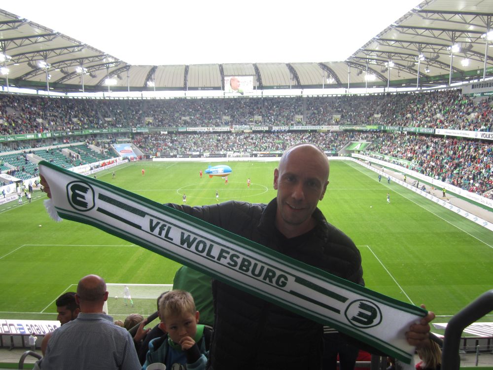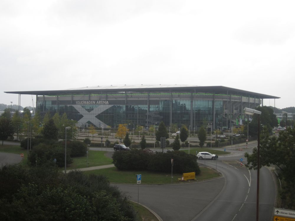 Søndag morgen tog Lasse og jeg afsked med de 3 andre og kørte to timer sydpå til Wolfsburg. Wolfsburg er kendt for to ting; hovedsæde for bilkoncernen Volkswagen og byens fodboldhold VfL Wolfsburg – vi kom for det sidste. Byen blev grundlagt i 1938 for at huse arbejderne ved den nyåbnede Folkevognsfabrik. Fabrikken fylder stadig det meste af byen selvom produktionen ophørte i 1978. I dag har byen ca. 120.000 indbyggere.