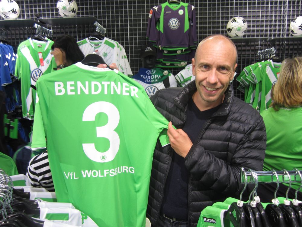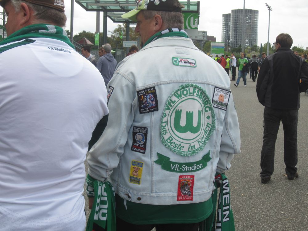 Der var langt fra oktoberfest og Reperbahn i Hamburg til Wolfsburg på en søndag formiddag i regnvejr. Det mest ophidsende vi fandt denne søndag formiddag var loppemarkedet på hovedgaden.Wolf on Wolfstreet!! (eller noget).Efter lidt frokost i byen begav vi os mod det flotte Wolfswagen Arena, indviet i 2002 og med plads til lidt over 30.000 tilskuer.Med Bendtner som ny mand i klubben var det hans navn der prydede mange af trøjerne i fan-shoppen Som i resten af Tyskland så er comboyjakke/vest med påsatte mærker og halstørklæder rundt om håndleddene også hotteste fodboldmode i Wolfsburg.Die Wölfe (Ulvene) oplevede deres bedste sæson da klubben meget overraskende sikrede sig det tyske mesterskab i 2008/09. Dengang var angriberen Dzeko stærkt medvirkende til mesterskabet, i 2014 hed angrebshåbet Nicklas Bendter..Dagens modstander var Bayer Leverkusen.Kampen sluttede hele 4-1 til hjemmeholdet. Så med fem mål, et rødt kort og 90 minutter på banen til Bendtner takkede vi pænt for underholdningen og kørte hjemad. (Bemærk banneret nederst i midten.. God Bedring M.! Nogen vidste at jeg var i byen dagen forinde..)