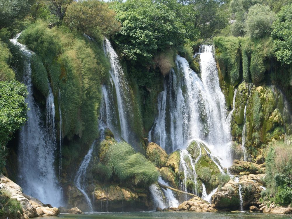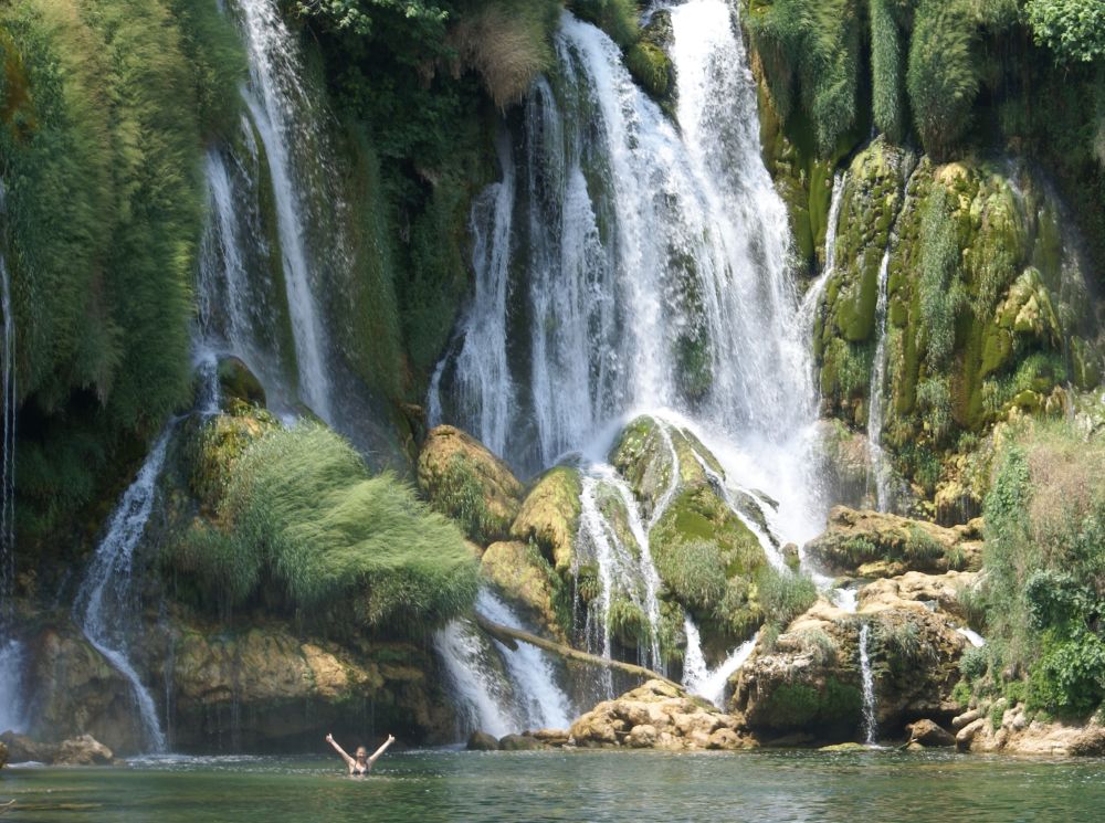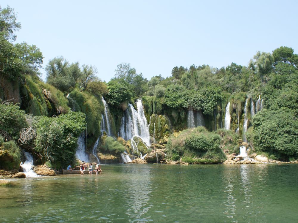 Efter at have nydt en uges afslappende ferie lidt uden for Split i Kroatien, lejede vi en bil og vores Balkantur var for alvor i gang. Fra Split tog det 1½ time at køre til grænsen til Bosnien. Kort efter holdt vi pause her ved det imponerende vandfald Kravice.Vandfaldet ligger på Trebizat-floden, er 25 meter højt og har en bredde på i alt 120 meter.Og så var det ellers på med badetøjet.Med en temperatur på langt over de 30 grader var dette stop en kærkommen mulighed for at køle lidt ned.Der var masser af folk, turister og lokale, der alle havde fundet vej til dette smukke vandfald. Vi tog en bid mad og en is ved en af stedets caféer – og fortsatte herefter til Mostar hvor vi skulle bo de næste par dage.