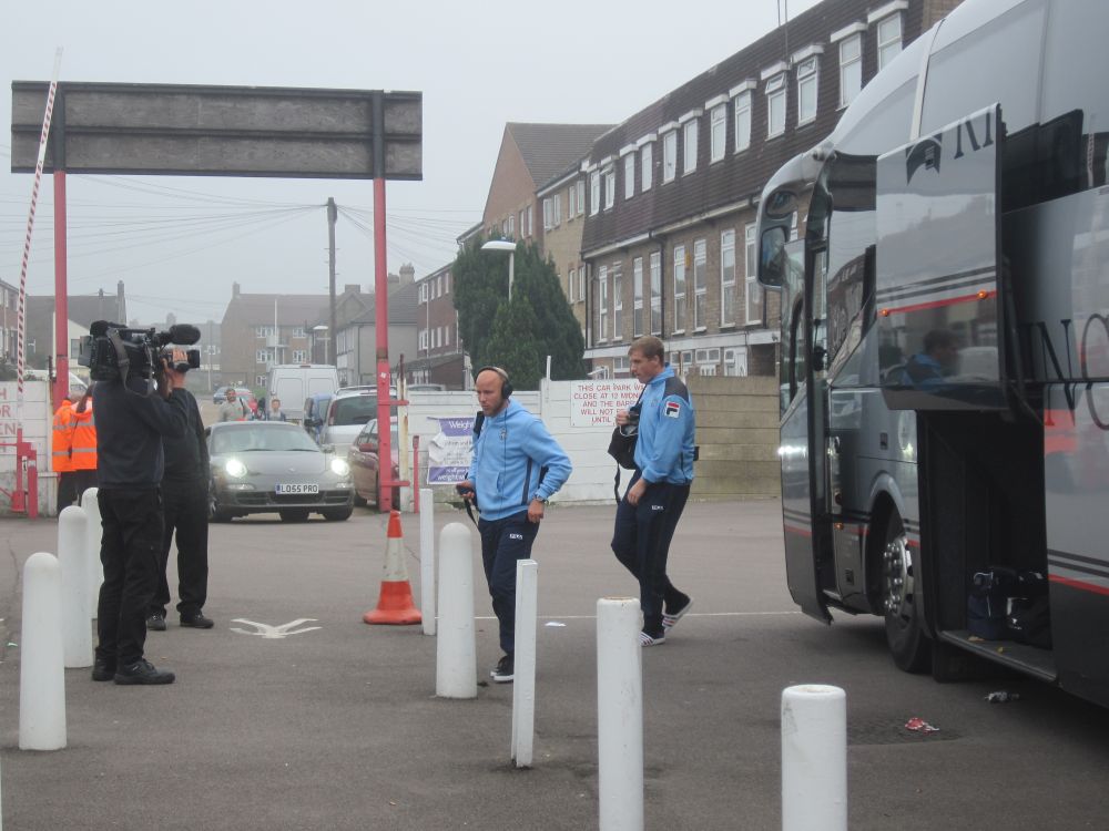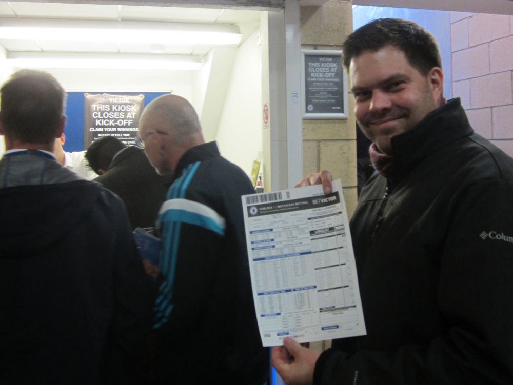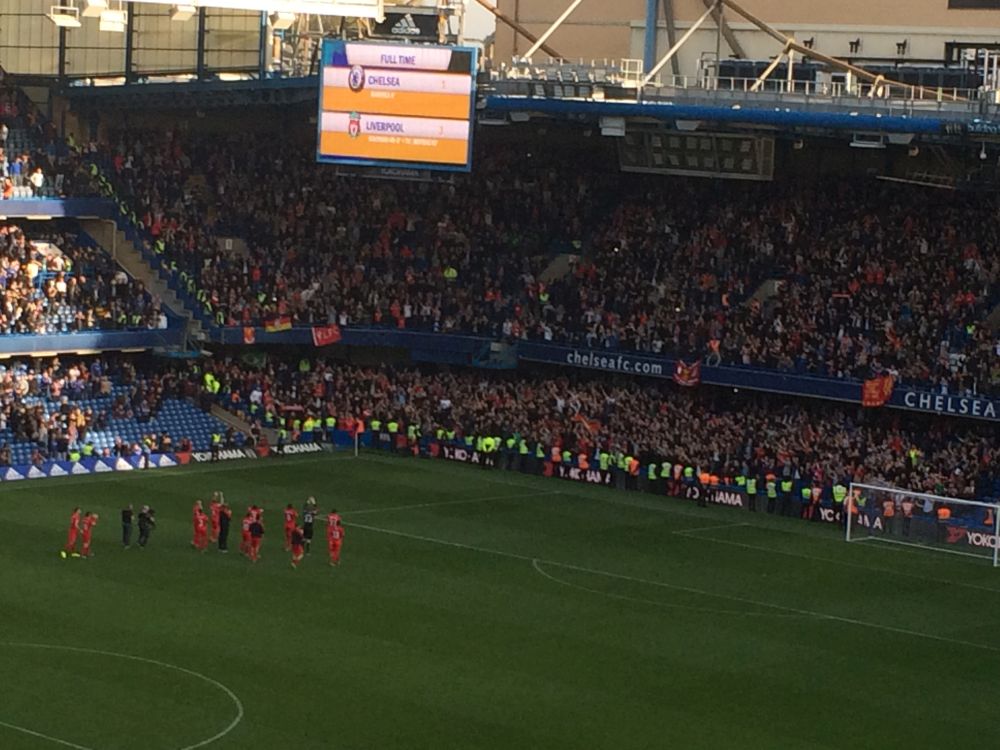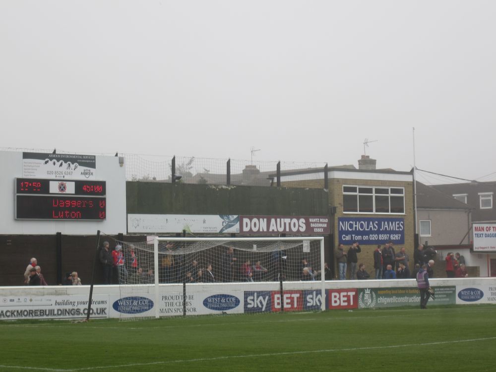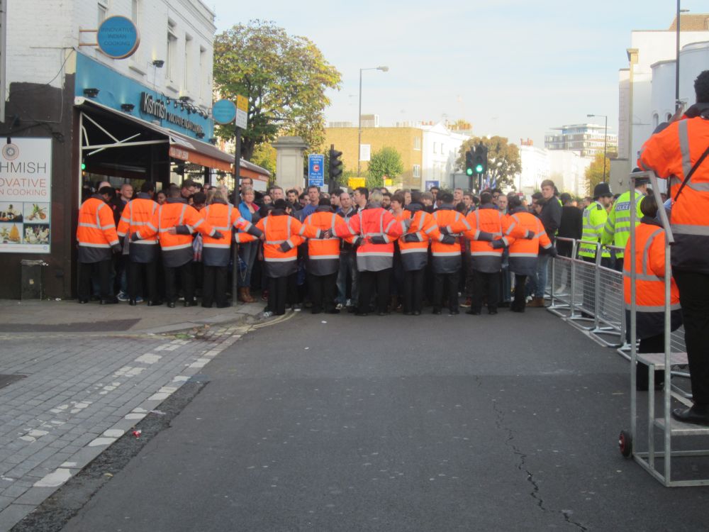 Hovedretten var denne lækkerbisken af en kamp mellem Chelsea og Liverpool.Historien bag fremskaffelsen af billetterne til denne kamp er næsten den bedste del af denne weekend. Vi havde igennem flere måneder arbejdet frem og tilbage på forskellige kampe vi ville se – men kunne ikke skaffe billetter til noget (til en rimelig pris), så faktisk stod vi 1 uge før afrejse uden fodboldbilletter. I desperation skrev jeg til min gode ven og fixer, Edu i Barcelona for at høre om han ikke kunne gøre noget.. Et par dage senere havde Edu snakket med hans gode ven, som er ven med Cesc Fabregas fra Chelsea. Cesc havde da lige 2 billetter i overskud – dem kunne vi da få. Så vi endte med at få 2 billetter til Chelsea – Liverpool, gratis – af Cesc Fabregas!!Så en kæmpe thumbs up til Edu og Fabregas (og hans for os ukendte ven)! Muchas gracias.Vi kvitterede med at smide nogle penge på Fabregas som første målscorer (som vi dog ikke vandt på!).Langsidebilletter til Chelsea – Liverpool er ikke helt billigt, og vi kunne se på billetten af normalprisen var ikke mindre en 82£ – små 800 kroner!!!Det var primært turister og forretningsfolk der sad omkring os.Chelseas hjemmebane, Stamford Bridge, kaldes i daglig tale også bare for ’broen’. I så fald havde jeg fået plads klods op ad en af bropillerne.Kampen endte med en lidt overraskende 3-1 sejr til udeholdet Liverpool – til min store glæde. Nogle uger senere blev Chelseas træner Mourinho fyret i Chelsea.Efter kampen skulle vi sammen med 30.000 andre hjem med Londons Underground, hvor vi blev lukket ind på stationen i hold. Meget effektivt!Da vi endelig kom frem ned på stationen rendte vi ind i Preben Elkjær – min kollega Henrik var meget beæret over at få et billede sammen med to af Europas bedste angribere..Næste punkt på programmet var VM-finalen i Rugby som blev spillet i London. Desværre måtte vi nøjes med at følge på denne storskærm. Finalen stod mellem New Zealand – Australien.The All Blacks opfører deres Haka før hver kamp – altid fascinerende at se.Kampen endte med en knusende sejr til favoritterne fra New Zealand på 34-17, hvilket mange af de tilrejsende kiwier fejrede hele aftenen og natten. Jeg sendte en kærlig tanke til min tidligere værtsfamilie i New ZealandSøndag morgen skiftede vi vores hotel i det centrale london ud med et i Østlondon tæt på messen. Vi kunne skyde genvej ved at tage en kabelbane, hvilket synes var alletiders idé…London var dog ramt af en tæt tåge, så vi kunne INTET se fra kabinen – hvilket vi grinte en del af.Smilet forsvandt dog dagen efter da tågen stadig ikke var lettet og vores aftenfly hjem blev aflyst – så vi måtte nappe en nat mere i London.Søndag var der dog én kamp på programmet i London og omegn, nemlig kampen i League 2 (fjerde bedste række) kampen mellem Dagenham & Redbridge mod Luton Town. Den kamp skulle vi ikke gå glip af…Dag & Red, eller Daggers er en af de yngste klubber i divisionerne. Klubben blev dannet i 1992 af en sammenslutning mellem Redbridge Forest og Dagenham. I 2009-2010-sæsonen rykkede klubben op i League 1, men måtte allerede året efter tage turen ned i League 2 igen.Spillerne fra udeholdet Luton ankommer til stadion og en TV rapporter er på plads.. Igen vi snakker den fjerdebedste række der er min. 60 hold der ligger bedre pladseret end dagens to hold!En second breakfast på den lokale pub hører sig til når man skal til fodbold.Daggers lå og rodede rundt i bunden af tabellen og endte også med at tabe dagens kamp med 0-2.Det fik klubbens fans til at kræve træner Burnetts afgang. ’We Want Burnett Out – we want Burnett our’ lød det fra klubbens hardcore fans bag målet.
