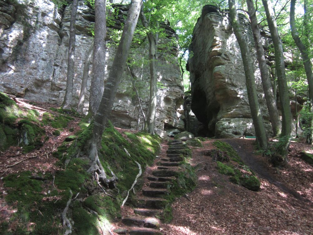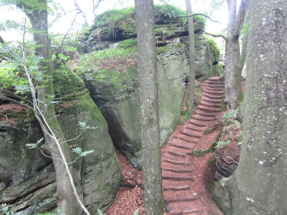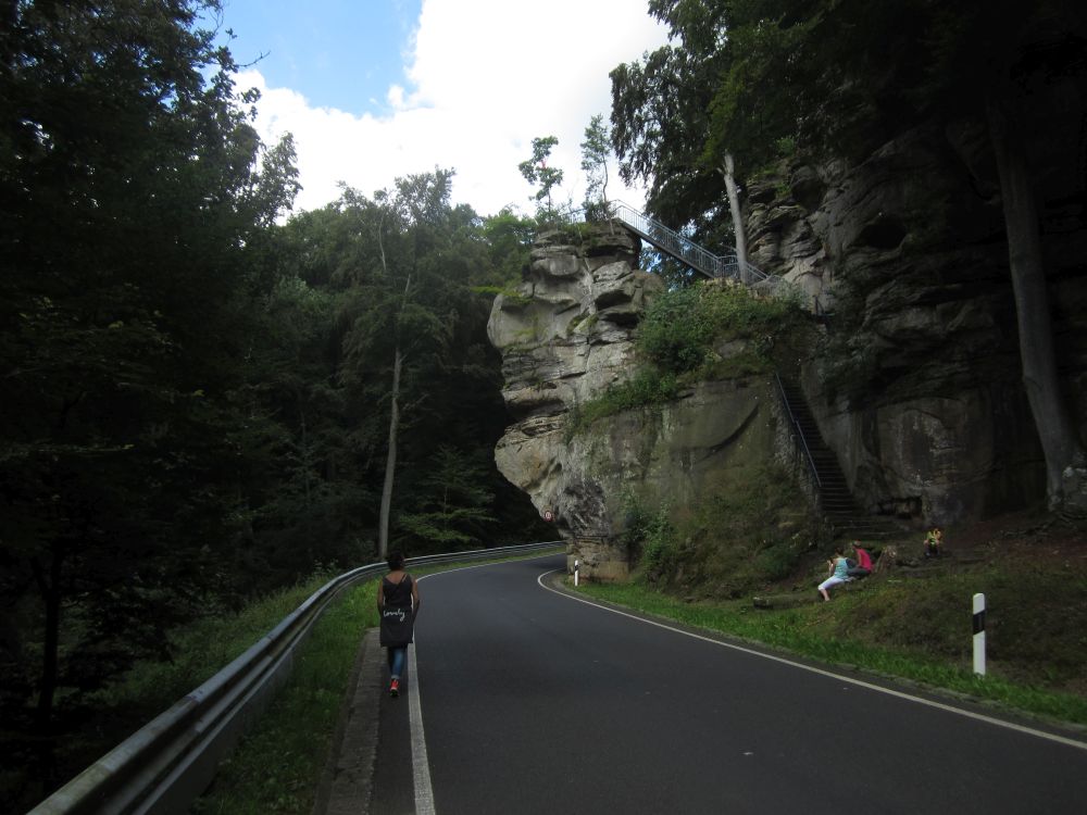 Et godt slagskud væk fra Mullerthal ligger Berdorfm et område med sære klippeformationer.En hel labyrent af små stier og slugter man nemt kunne fare vildt i, men denne flotte natursti første op til..Endnu et fint udsigtspunkt.Endnu et ansigt gemmer sig i klipperne.Velfortjent hvil.