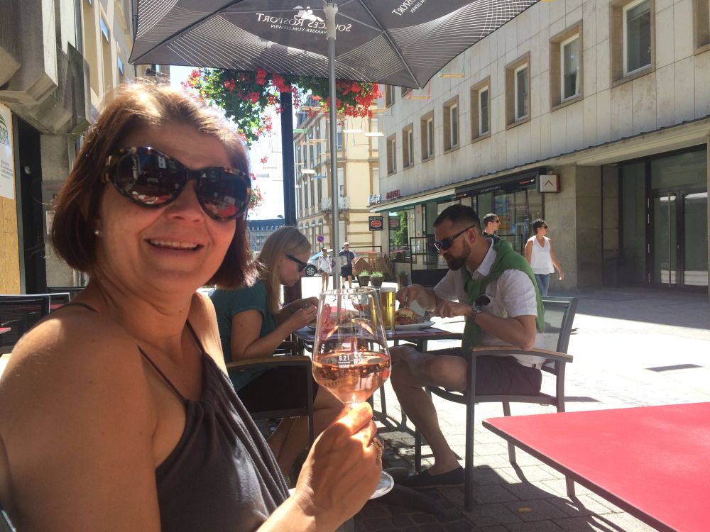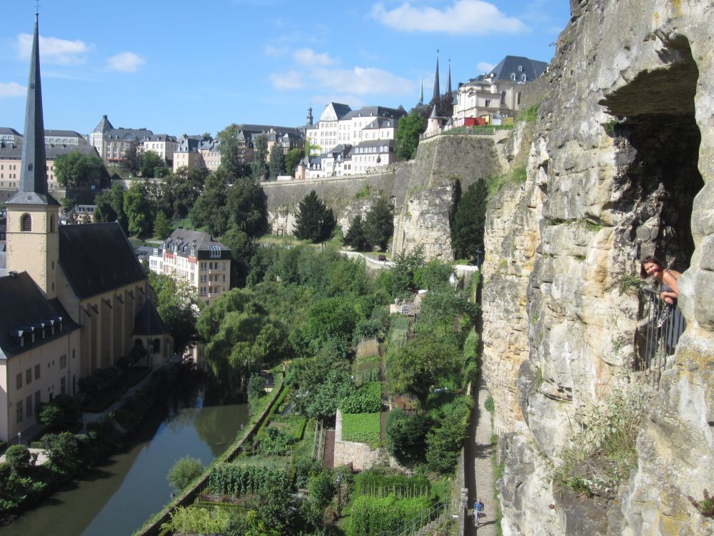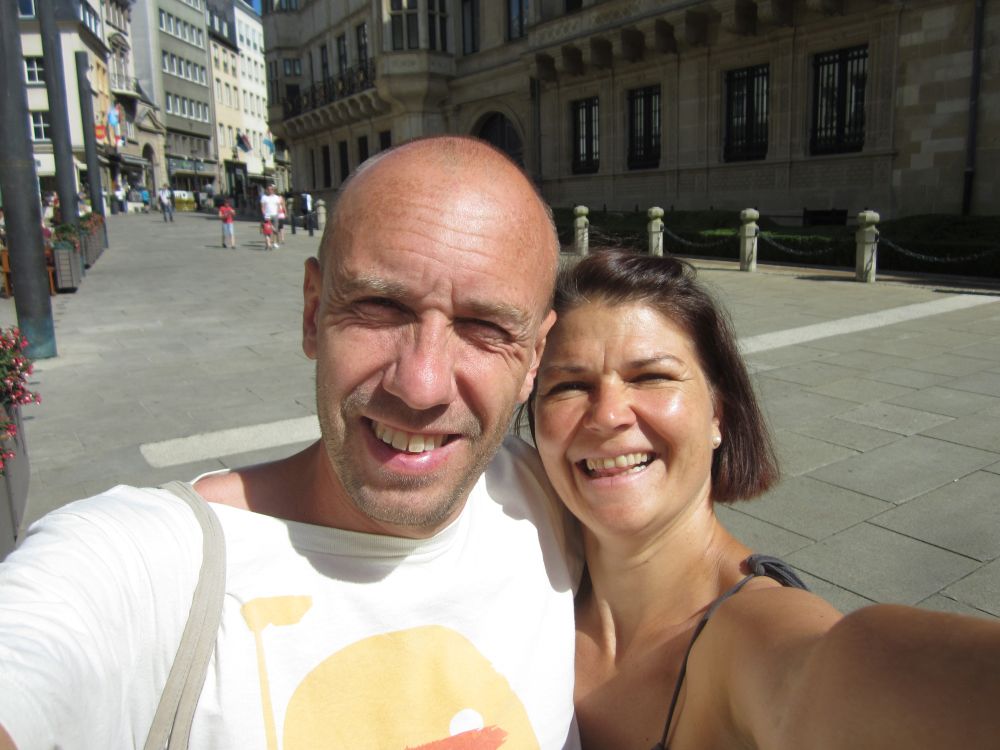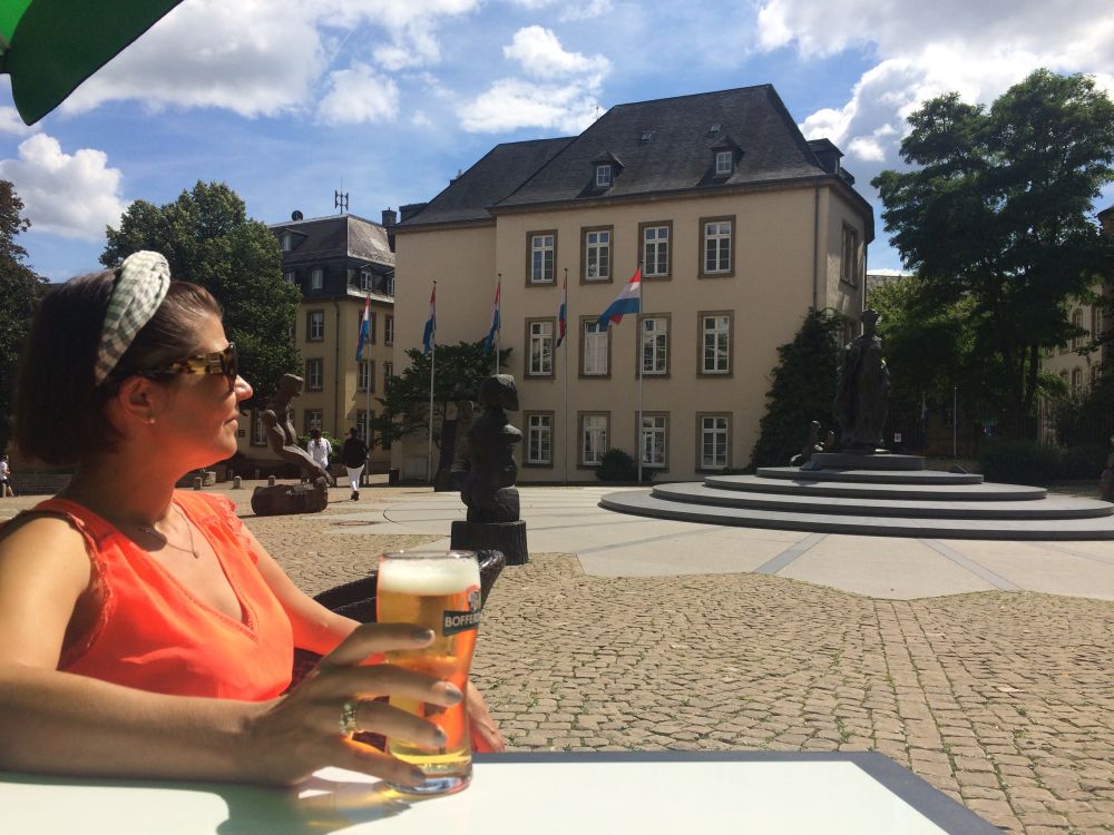 Efter et ’døgn på landet’ kørte vi til Luxembourg by – og tilbragte 2 dage der.Monument National de Solidarite Luxembourg er et monument dedikeret til dem der mistede livet under 2. verdenskrig. Foran brænder en evig flamme.Landets hovedstad (Luxembourg City) har små 100.000 indbyggere. Byen er beliggende på en klippe omgivet af floderne Petrusse og Alzette.Vejret fejlede bestem ikke noget – så en god undskyldning for et pit-stop undervejs.Weekenderne er åbenbart også markedsdag, så der var både et torv hvor der blev handlet med dagligdagsvarer samt et andet torv som var omdanne til decideret loppemarked.Går man rundt i nede i slugten og ender i bydelen Pfaffenthal, så kan man slippe for gåturen op igen ved at tage denne elevator der bringer dig midt om i den historiske del af byen igen. Med glasvægge (og glasbund) giver en et flot udsigt på vej op.En selfie fra elevatoren med glasbund.I baggrunden kan ses den nyere bydel hvor en del af EU parlamentet findes, bl.a. EU Domstolen.Det blev også en tur rundt i ned i de underjordiske gange, Kasematterne, som, ud over gode udsigtspunkter, giver et fint indblik i byens historie, der går tilbage til år 963.Byen har på grund af sin beliggenhed haft en vigtig (især militær) strategisk betydning gennem historien. De første fæstninger blev bygget så tidligt som det 10. århundrede. Omkring 1340 blev nye fæstningsværker bygget, som blev stående indtil 1867.I 1443 blev Luxembourg en del af Burgund, og senere det spanske imperium og det habsburgske monarki og i den periode gentagende gange styrket, så Luxembourg ved det 16. århundrede var et af de stærkeste fæstningsværker i Europa. Det er et ret fantastisk syn når man kigger ned i slugten – det er næsten som at kigge på en kæmpe modeljernbane.Det er et ret fantastisk syn når man kigger ned i slugten – det er næsten som at kigge på en kæmpe modeljernbane.Med 30 graden hen på eftermiddagen var der vel kun en passende måde af afslutte weekenden på..Med 30 graden hen på eftermiddagen var der vel kun en passende måde af afslutte weekenden på..