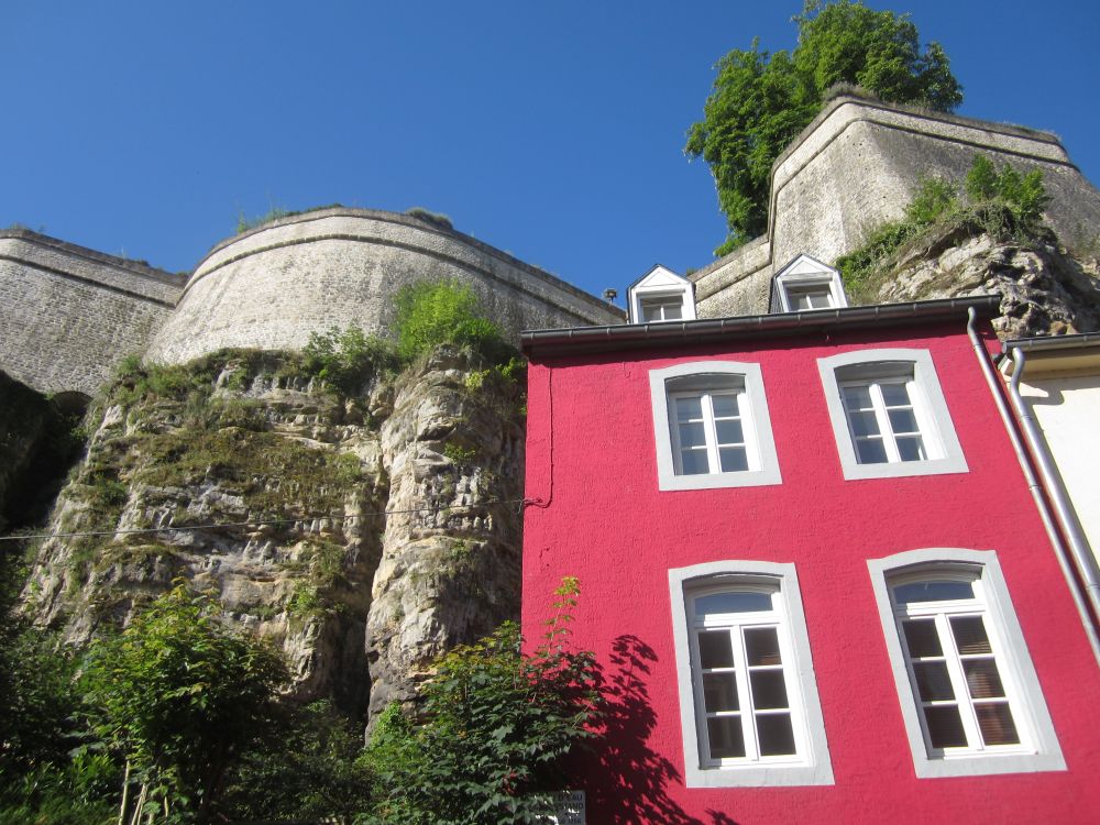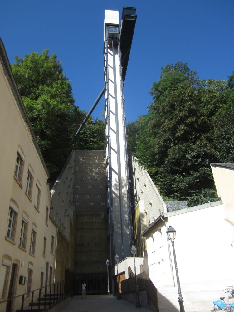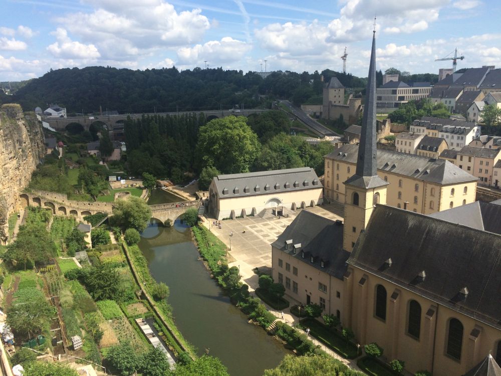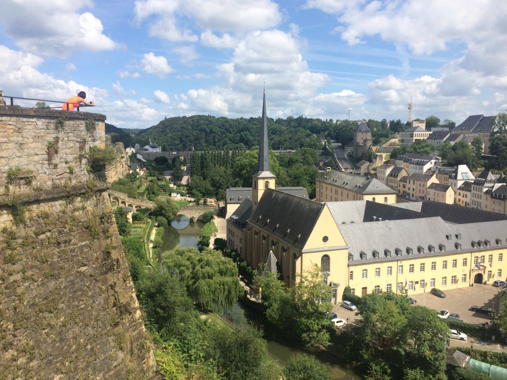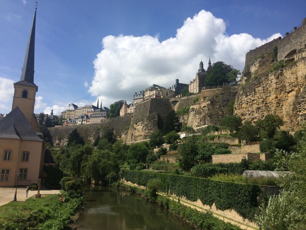 Efter et ’døgn på landet’ kørte vi til Luxembourg by – og tilbragte 2 dage der.Monument National de Solidarite Luxembourg er et monument dedikeret til dem der mistede livet under 2. verdenskrig. Foran brænder en evig flamme.Landets hovedstad (Luxembourg City) har små 100.000 indbyggere. Byen er beliggende på en klippe omgivet af floderne Petrusse og Alzette.Vejret fejlede bestem ikke noget – så en god undskyldning for et pit-stop undervejs.Weekenderne er åbenbart også markedsdag, så der var både et torv hvor der blev handlet med dagligdagsvarer samt et andet torv som var omdanne til decideret loppemarked.Går man rundt i nede i slugten og ender i bydelen Pfaffenthal, så kan man slippe for gåturen op igen ved at tage denne elevator der bringer dig midt om i den historiske del af byen igen. Med glasvægge (og glasbund) giver en et flot udsigt på vej op.En selfie fra elevatoren med glasbund.I baggrunden kan ses den nyere bydel hvor en del af EU parlamentet findes, bl.a. EU Domstolen.Det blev også en tur rundt i ned i de underjordiske gange, Kasematterne, som, ud over gode udsigtspunkter, giver et fint indblik i byens historie, der går tilbage til år 963.Byen har på grund af sin beliggenhed haft en vigtig (især militær) strategisk betydning gennem historien. De første fæstninger blev bygget så tidligt som det 10. århundrede. Omkring 1340 blev nye fæstningsværker bygget, som blev stående indtil 1867.I 1443 blev Luxembourg en del af Burgund, og senere det spanske imperium og det habsburgske monarki og i den periode gentagende gange styrket, så Luxembourg ved det 16. århundrede var et af de stærkeste fæstningsværker i Europa. Det er et ret fantastisk syn når man kigger ned i slugten – det er næsten som at kigge på en kæmpe modeljernbane.Det er et ret fantastisk syn når man kigger ned i slugten – det er næsten som at kigge på en kæmpe modeljernbane.Med 30 graden hen på eftermiddagen var der vel kun en passende måde af afslutte weekenden på..Med 30 graden hen på eftermiddagen var der vel kun en passende måde af afslutte weekenden på..