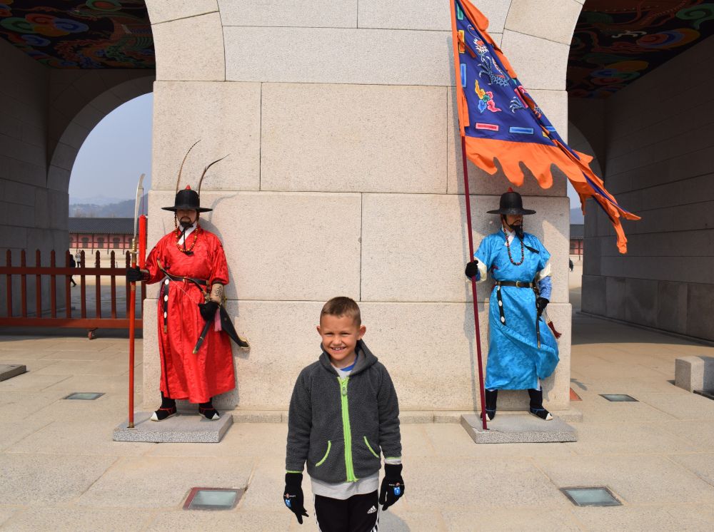 Vi ville rigtig gerne have været oppe og se DMZ, der hvor grænsen mellem Nord- & Sydkorea går. Men desværre må børn under 10 år må ikke kommer med og da vi ikke kunne ændre på at der i Ebbe-Emils pas stod 9½ år så måtte vi lave historietime på Krigsmuseet i Seoul i stedet for.