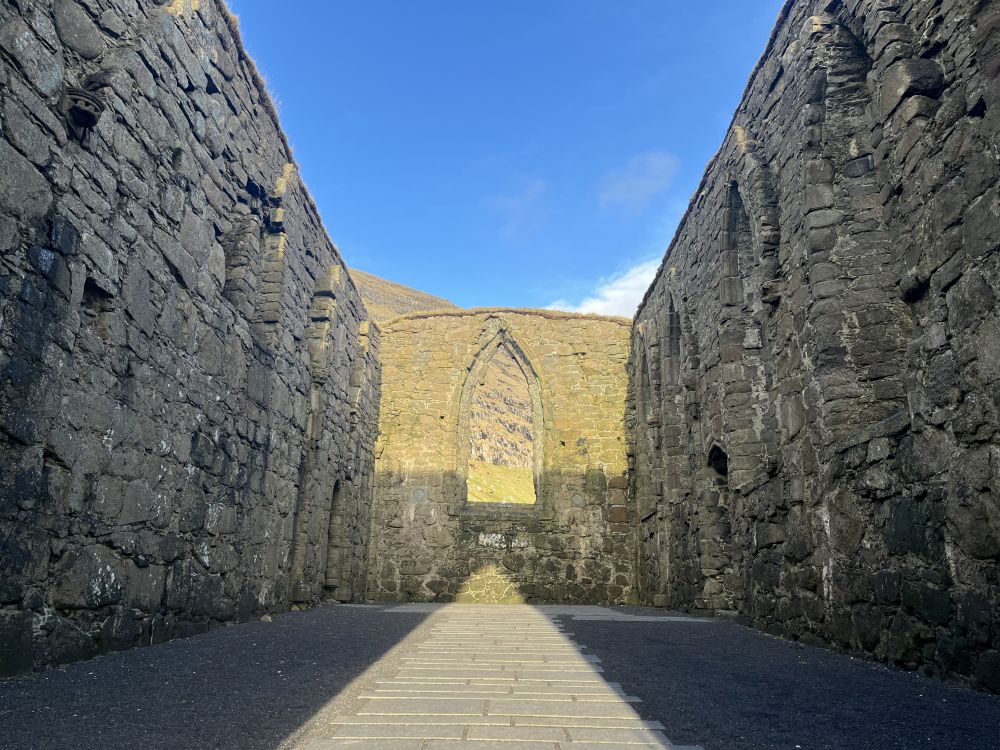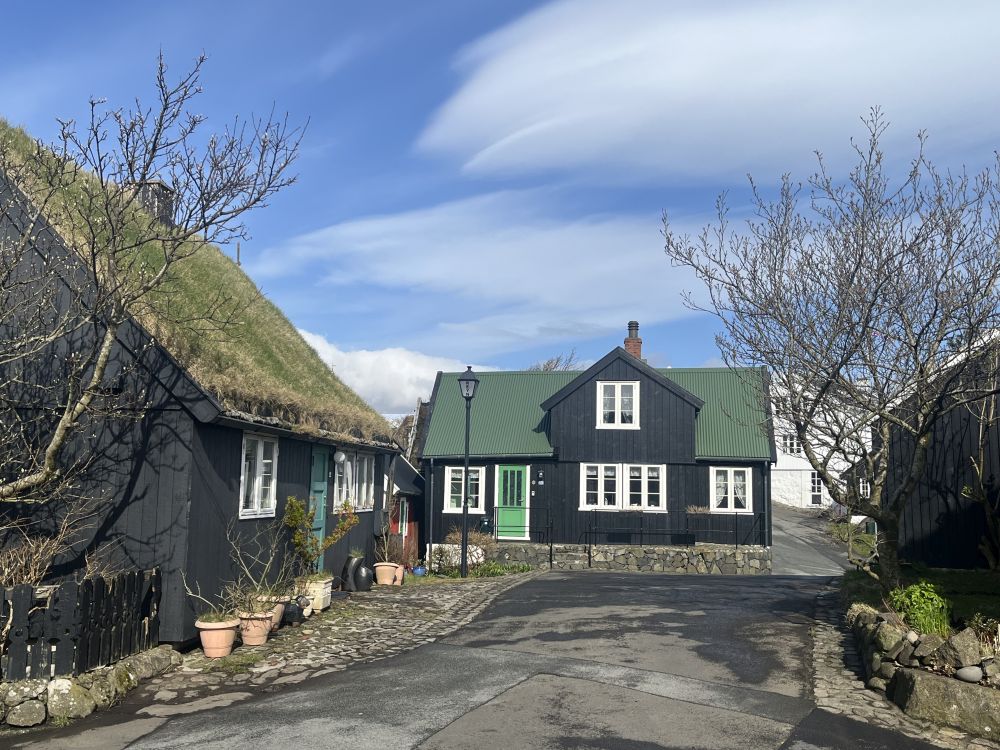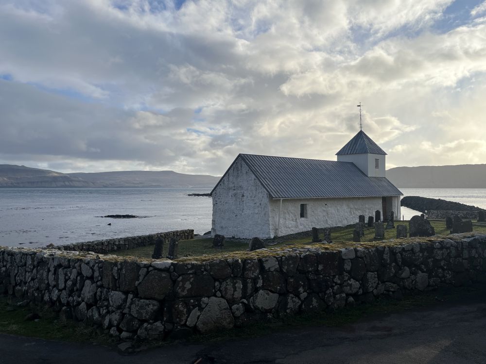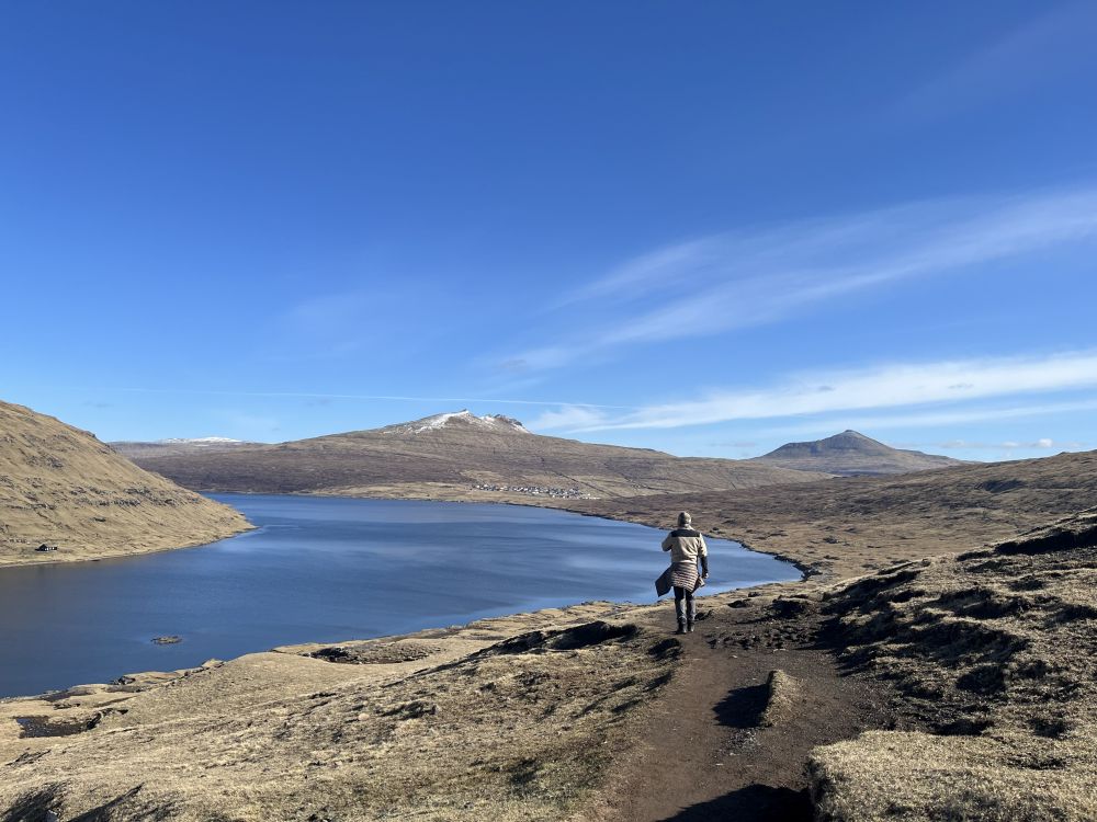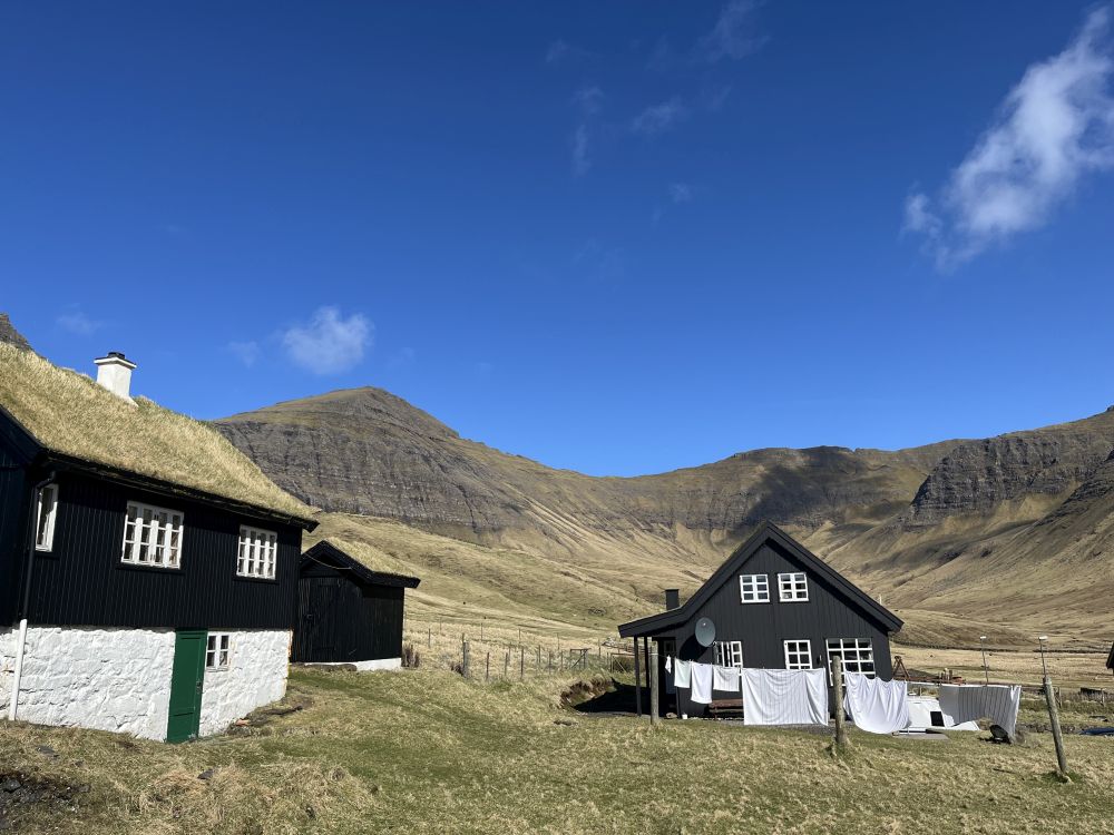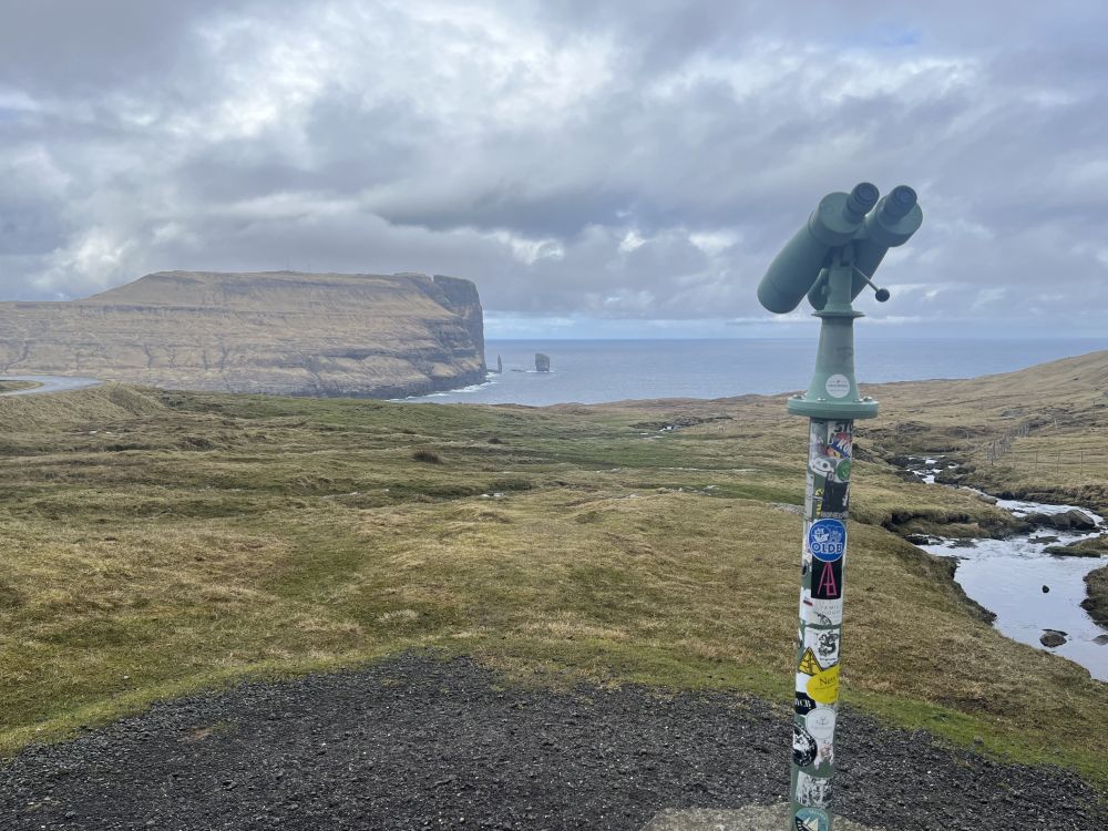 Risin og Kellingin (færøsk for Jætten og Kællingen) er navnet på de to store stensøjler der står ud for øen Eysturoy. Sagnet fortæller at Island havde til hensigt at trække Færøerne tættere hen til sig. Derfor blev kæmperne Risin og Kellingin bedt om at udføre denne opgave. Kæmpen blev stående i havet, mens hans kone klatrede op på bjerget for at binde Færøerne sammen for siden at skubbe dem op på ryggen af kæmpen. Lang historie kort – de nåede ikke at færdiggøre deres arbejde da morgenen begyndte at gry. Hun begav sig hjemad, kæmpen forrest og hans kone bagved. Men da solen steg op af havet forstenede solens stråler dem begge.En fodboldbane der ikke længere er i brug og efter planerne skal laves om til en campingplads. Tænker der er røget nogle bolde i søen/havet igennem årene.Fremme i den lille by Gjógv ligger denne lille lokale lokale coffee shop.Fra den lille café begyndte vores vandretur ad Ambadalur.Målet var toppen af fjeldet – ca. 400 meter over havet.Flot udsigt over byen Gjógv (udtales vist Jackv) der mest kendt for den naturliige havn i bunden af slugten, hvorefter de via en rampe trækkes op på land, så de ligger beskyttet fra bølgerne. Naturhavnen er sandsynligvis allerede blevet benyttet i vikingetiden.I 2005 besøgte Kronprins Frederik og Kronprinsesse Mary Gjógv. Et lokalt par fik den idé at placere en bænk med flot udsigt. Mary indviede bænken og idag kendes bænken som “Marys Bænk”.En del fulgle havde slået sig ned langs kløftens sider, og i sommermånederne kan man se lunderne når de kommer frem fra deres huler og flyver ud på havet efter føde til ungerne. Vi valgte ikke at spise på Anus Steakhouse…