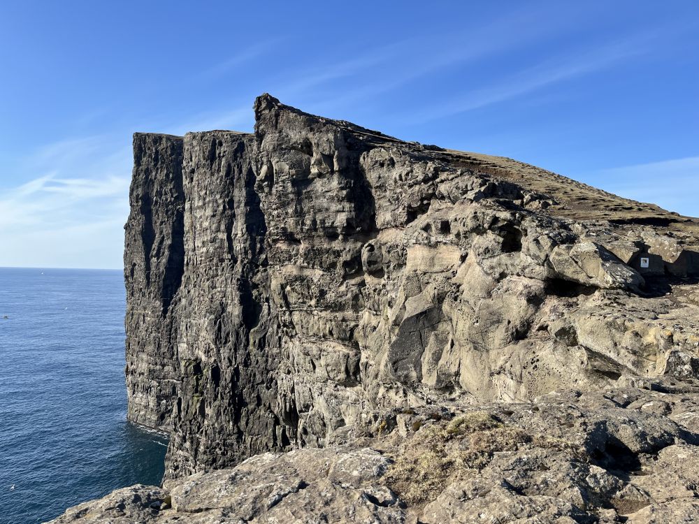 Turens højdepunkt var nok denne eventyrligt smukke vandretur fra Miðvág til Trælanipa.Trælanípa eller Slave Cliff er denne lodrette klippevæg, der stikker 142 meter op fra havet. Det siges at klippen har fået sit navn fra vikingetiden, hvor ulydige slaver blev skubbet ud over skrænten…Fra toppen er der en imponerende udsigt over den sydlige del af Streymoy samt de omkringliggende øer.Fra toppen af Trælanípa har man en lige så fantastisk udsigt hvis man kigger ind over land. Her finder man Sørvágsvatn – der nok er bedre kendt som “søen over havet”.Fortsætter man til enden af søen (til ventre) når man Bøsdalafossur. Et 30 meter højt vandfald hvor vandet fra søen strømmer direkte ud i Atlanterhavet. (tiden tillod desværre ikke vi nåede helt derud!)Desværre kræver jagten på det perfekte billede fra tid til anden sine ofre – når uforsigtige turister kommer for tæt på kanten!Gåturen fra parkeringspladsen i Miðvág til Trælanípa tager ca. 1 times tid hver vej (men kan nemt udvides til en længere tur).Ikke langt fra lufthavnen ligger den idylliske landsby Gásadalur med blot 25 huse!Byen er mest kendt for vandfaldet Múlafossur. Jeg kipper med flaget for Færøerne, der får mine varmeste anbefalinger.