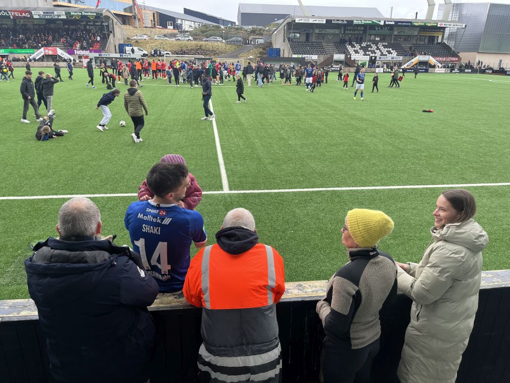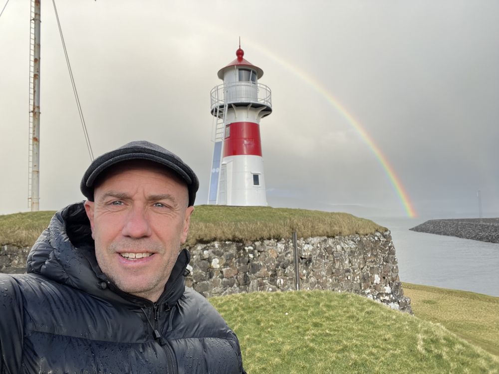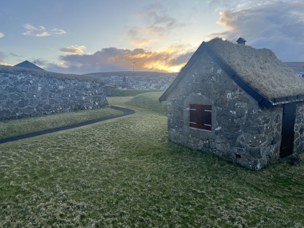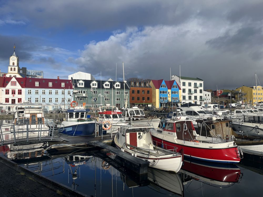 Tórshavn er med sine cirka 18.000 indbyggere ørigets største største by. Byen er blanding af moderne by og tusind år gamle traditioner med bygninger med græsklædte tage og brolagte gader.Tórshavn er den vigtigste havn på Færøerne, har færgeforbindelse til Nólsoy og SuðuroyMan kan også ankomme til Tórshavn fra udlandet via søvejen. Der er færgeforbindelser til både Danmark og Island. Derudover ankommer en del krydstogtsskibe om sommeren til Thorshavns Havn.Skansin er en gammel fæstning beliggende på en høj ved havnen i Tórshavn.I dag er Skansin fredet, og et yndet turistmål bl.a. på grund af den fine udsigt over byen og til øen Nólsoy.Vejret er omstifteligt på Færøerne, det ene øjeblik skinner solen, og det næste øjeblik regner det. Det gav i dette tilfælde en flot regnbue henover Skansen.Søndag eftermiddag stod den på topkamp i den bedste Færøske fodboldrække hvor hjemmeholdet HB Torshavn tog imod rivalerne fra Klaksvik. Det endte med en 1-0 sejr til hjemmeholdet på et mål i sidste minut.Færøerne er et lille samfund, og det var tydeligt at mange af tilskuerne havde en relation til spillerne på banen. Her er det min samarbejdspartners datter længst til højre, og spilleren er svigersønnen.