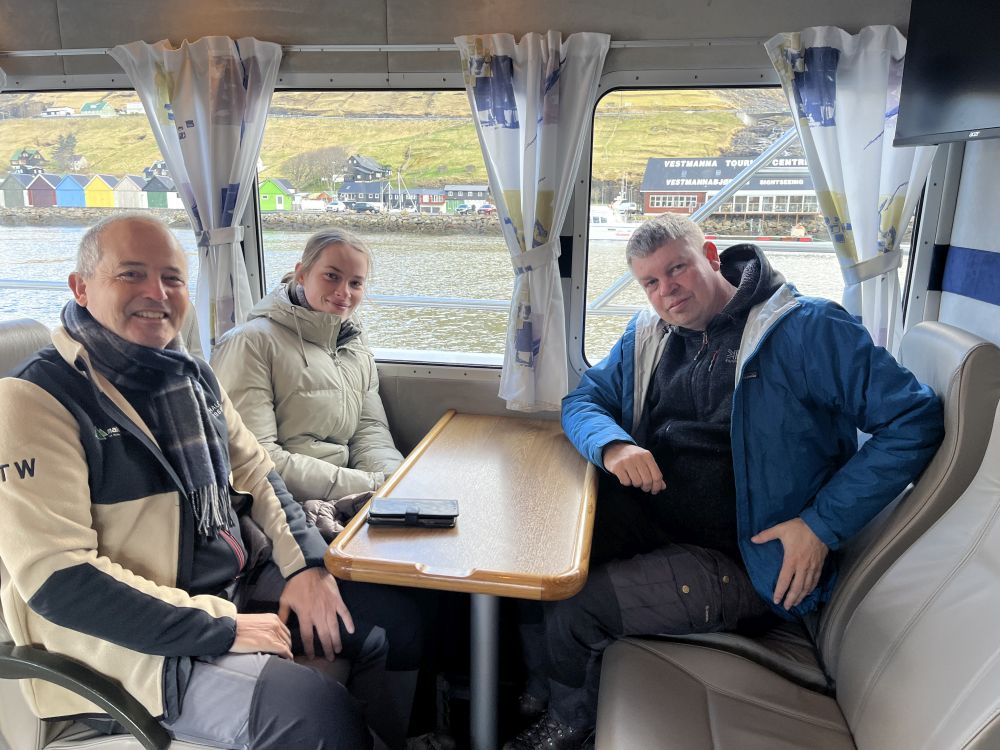 Vestmanna eller Vestmannahavn er en bygd på det nordvestlige del af øen Streymoy.Herfra er det oplagt at sejle ud og opleve Vestmannabjergene, med de smalle stræder og dybe grotter.Holdet på Færøerne ombord.I (sommer)sæsonen lever og yngler tusindvis af havfugle her. Herunder mallemukker, lomvier og alker.Der er også mulighed for at se lunder, også kaldt søpapegøjer. De bygger deres reder på klippehylder og græsklædte skråninger, hvor de lægger et enkelt æg. På Færøerne drives der fortsat jagt på de lunderne (der er en lokal delikatesse), men i dag er jagten underlagt regulering for at undgå fortidens overfangst.Man sejler tæt på de smalle stræder og dybe grotter og ikke mindst de stejle næsten 700 meter høje klippesøjler.Skøn middag med vores samarbejdspartner og hans kone på fin restaurant i Torshavn.
